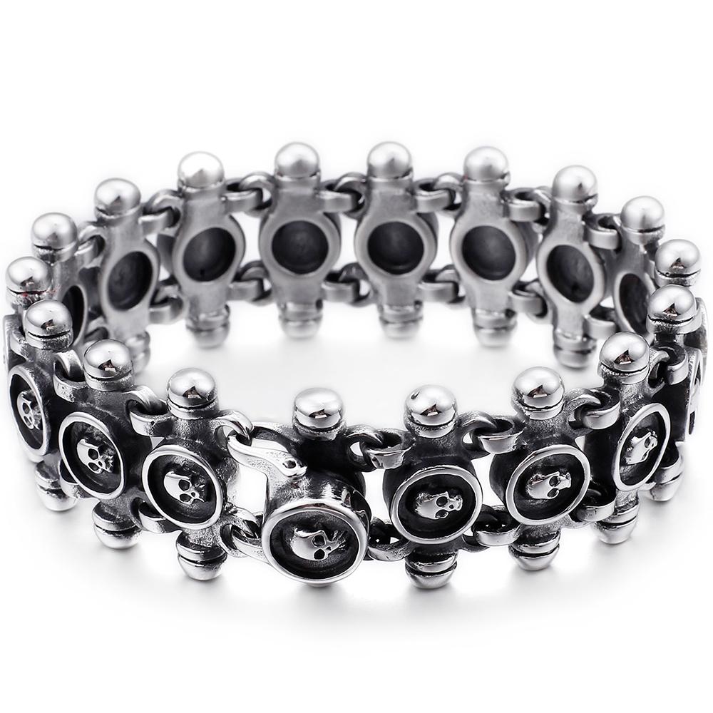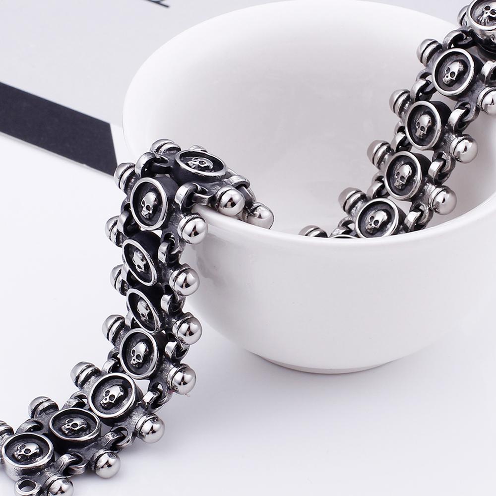 Bracelets Type:Chain & Link BraceletsMetals Type:Stainless steelFine or Fashion:FashionChain Type:Link ChainItem Type:BraceletsCompatibility:All CompatibleShape\pattern:SkeletonClasp Type:Spring-ring-claspsSkull Bracelet For Men Stainless Steel:Mens JewellerySize:16-25cm