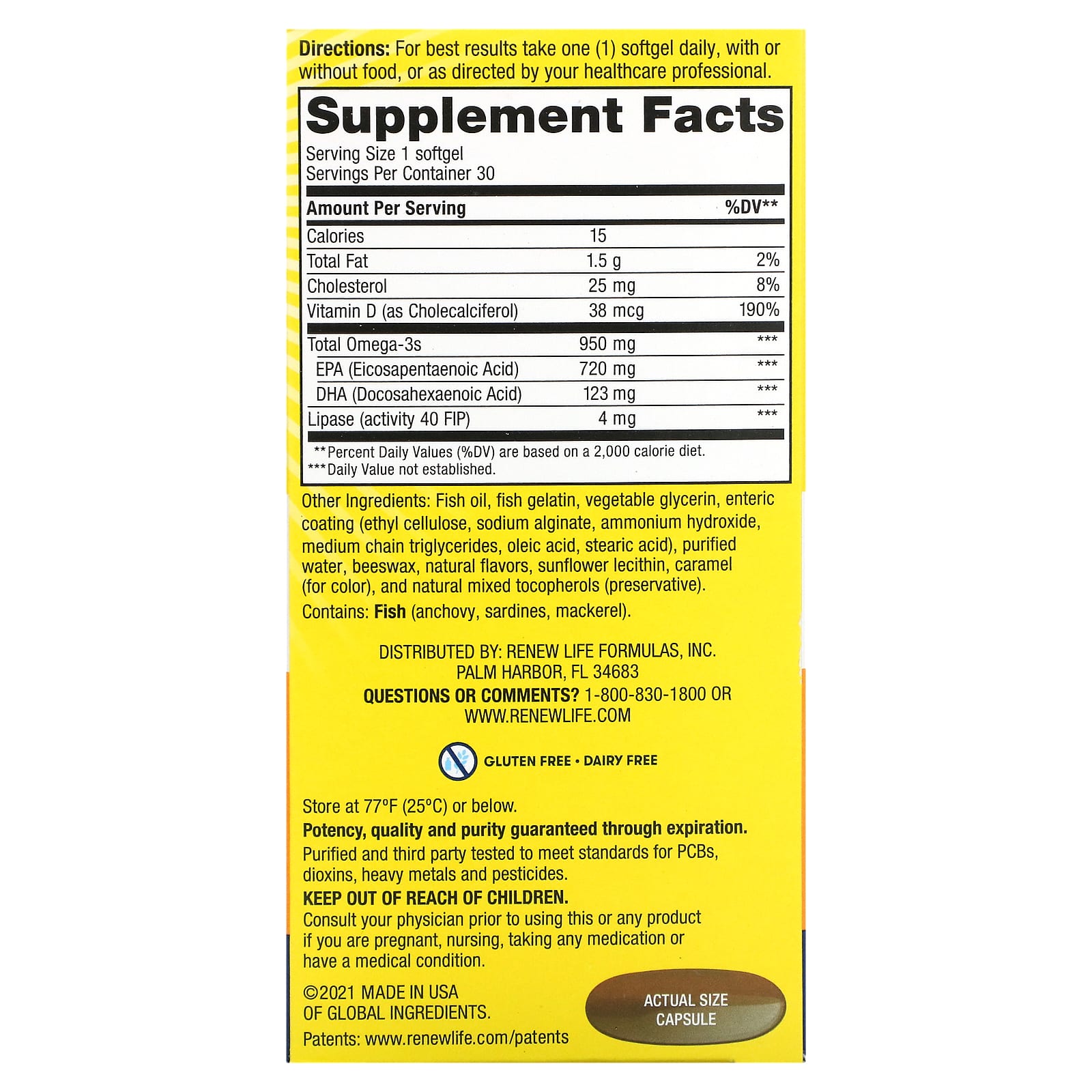 Purified and third-party tested to meet standards for PCBs, dioxins, heavy metals and pesticides.