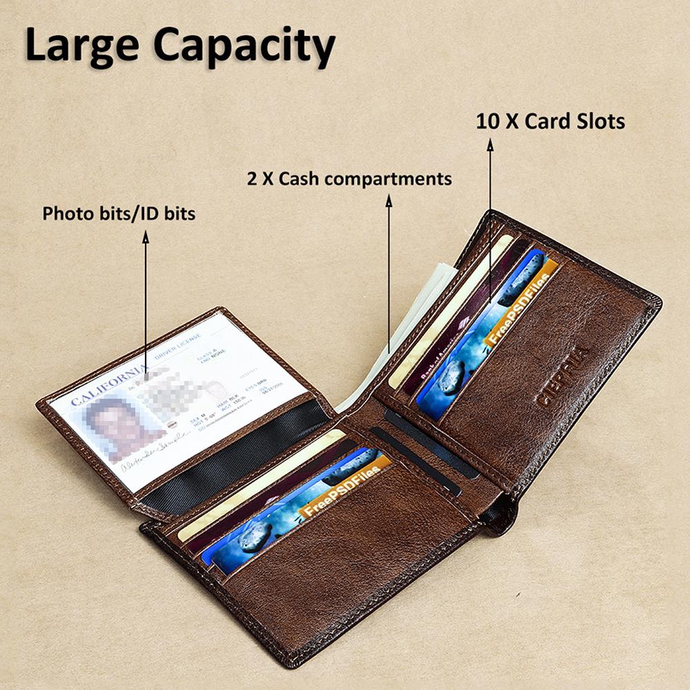 This Wallet Is Made Of High Quality Genuine Leather, Feels Luxury And Comfortable. Looks Even Better After Using For A Long TimeMain Material: Genuine LeatherSize: One sizeLength:11cmWidth: 10cmHeight:1cmMulti Function Card Holder Man Leather WalletEquipped With Anti-theft RFID Blocking Material, This Leather Wallet Will Keep Your Information Safe From Electronic ThievesAs Genuine Cowhide Leather Wallet, It Will Become Brighter And Brighter Over Time