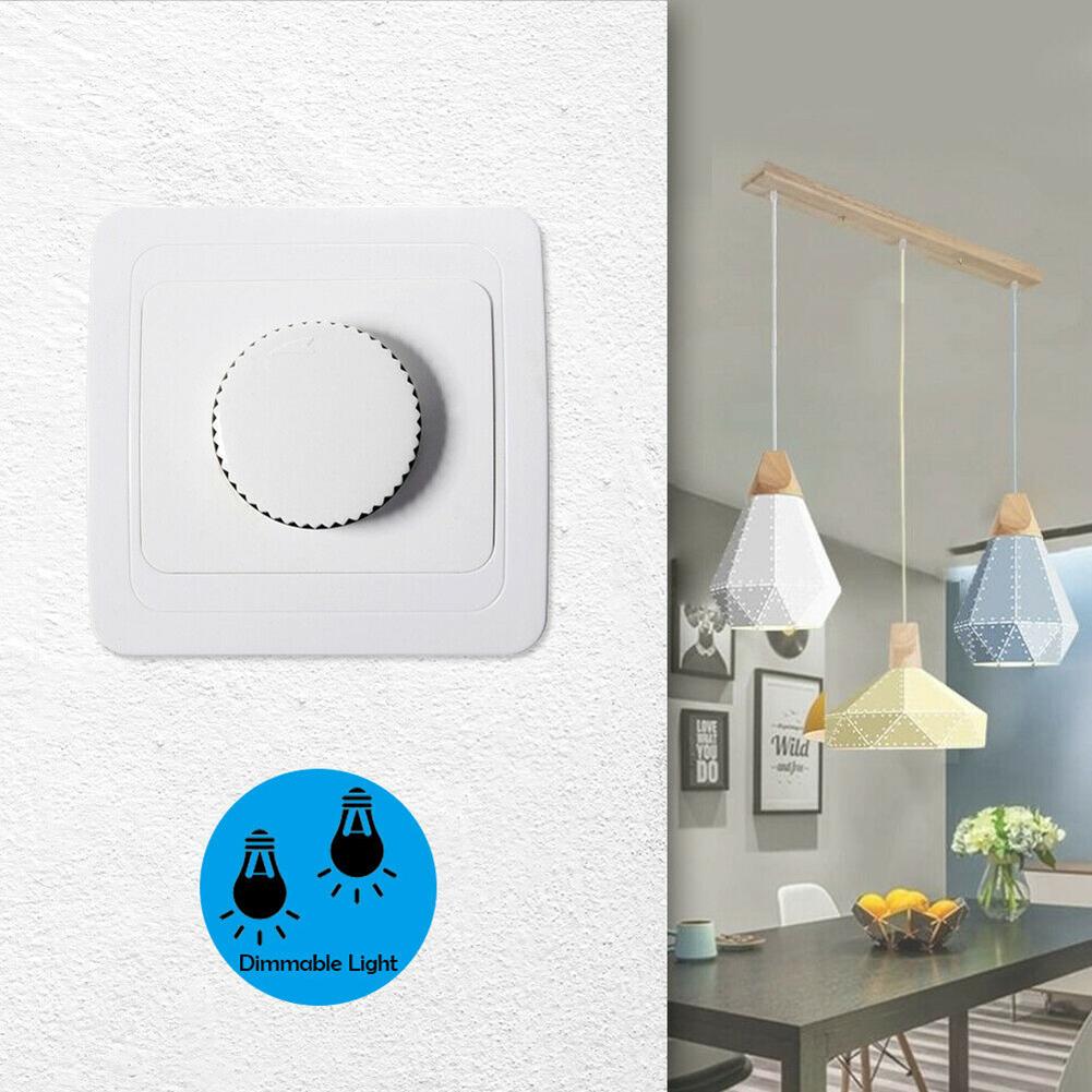 Feature:* and *Enables continuous dimming of dimmable LED lamps, conventional lamps and halogen lamps from 4 to 300 W.*Trailing edge dimmer; Can also be configured as a leading edge dimmerDetails:Product type: LED dimmerMaterial: ABSColorwhiteVoltage: AC 200V - 250VOutput power: 4 to 300WDimensions: 81 x 81 mmSpecification: European standardPackage content:1x LED rotary dimmer switchNote:1. The real color of the item may be slightly different from the pictures shown on website caused by many factors such as brightness of your monitor and light brightness.2. Please allow slight manual measurement deviation for the data.