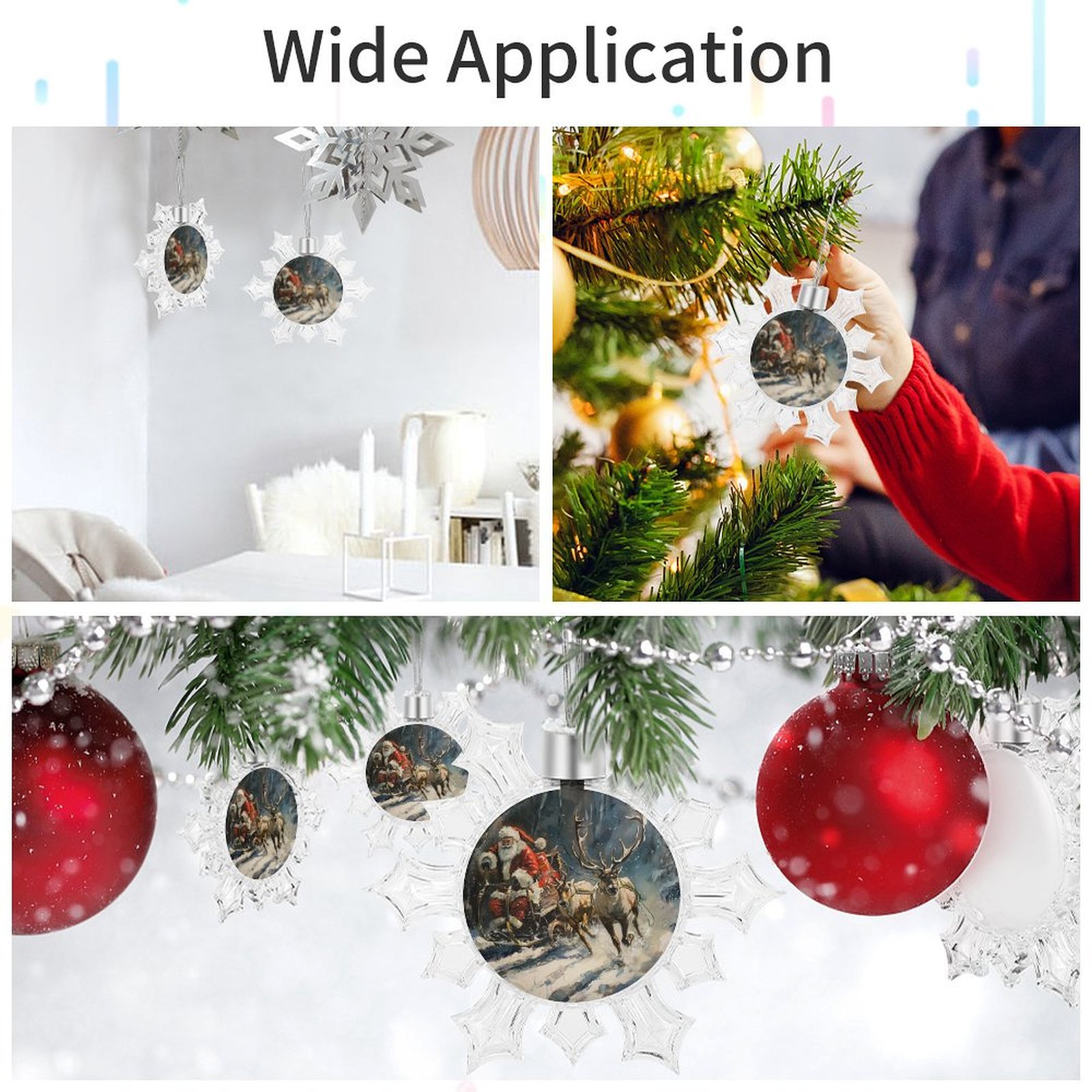 Perfect Decorations: You can connect the pre-punched holes to string the snowflakes together, and then hang them in the target location to make the Christmas tree or other Decorations more delicate and attractive. It can also be hung in the car or in the room to add a sense of atmosphere.