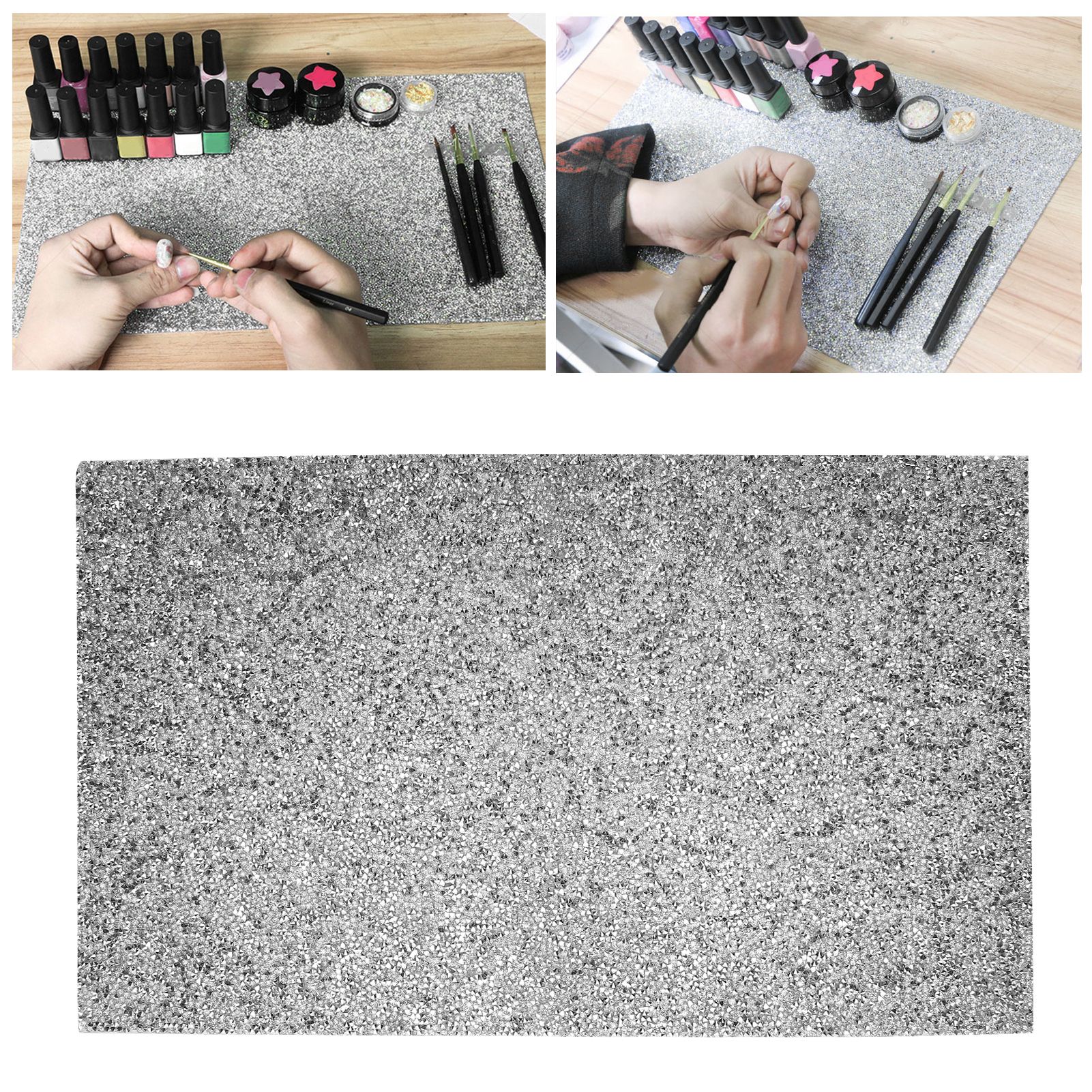 1Made of high quality PV material, exquisite and durable, fashionable style, can be used to decorate your desktop. 2Protect your work surface from stains and make the dressing table not stained by cosmetics and nail polish. 3Fine workmanship, easy to use and clean, an important and necessary accessory for nail salon. 4A very good nail art tool, suitable for beginners and professional salons, nail training, nail art display, etc. 5Light weight and foldable, easy to store and carry. 2 colors of mat are optional, you can choose according to preference.