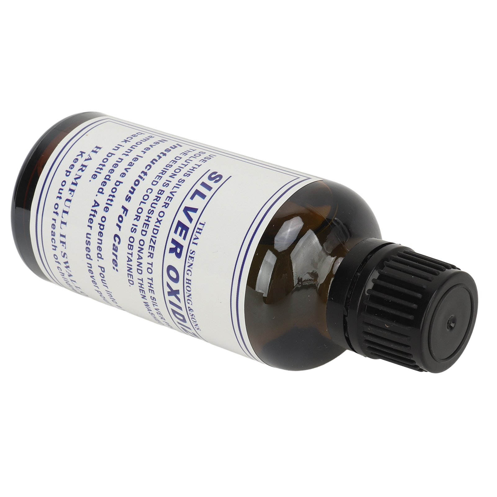 1FAST AND QUICK ACTING: Silver oxidizer solution works quickly and effectively to blacken and create an antique effect on silver jewelry. 2EASY TO USE: Silver oxidizer is safe to use on metal surfaces and can be applied using a brush, sponge, or cloth. You can also choose to immerse the entire item in the solution. Always use the product in plastic or glass containers. 3CONTROLLED APPLICATION: The water based solution allows for more control over the oxidation process. You can dilute the solution with water to slow down the reaction and have more control over the surface. 4NEVER OUTDATED: Silver antique solution never expires, but proper care is essential to maintain its effectiveness over time. Store the product at room temperature in a tightly closed original container. 5VINTAGE EFFECT: Achieve a beautiful vintage effect on your silver jewelry with this oxidizer solution. It adds character and depth, giving your pieces a unique and timeless appeal.