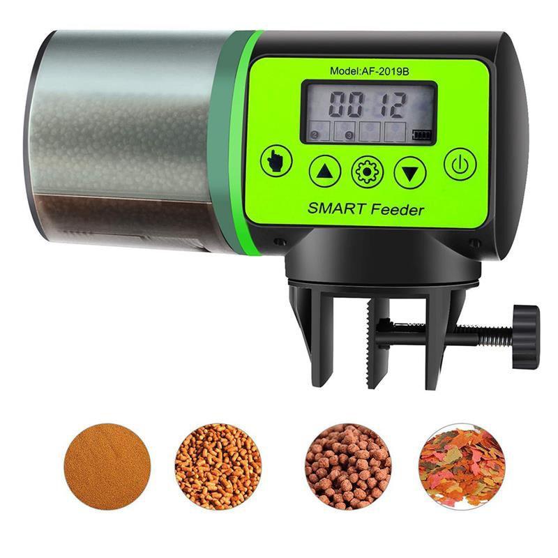 Bullet Points:1.Intelligent timing design: You can set up to 4 precise feeding times per day. You can feed at any time during the day or night, and provide 1*3 times feedings. You can also eat and experience feeding. 2.Large capacity: 200ml large-capacity feed bucket, suitable for all kinds of fish feed, such as granules, flakes and powder. 3.Large LCD screen and quiet design: intelligent control, all parameters are clearly visible, low noise, even hard to hear on quiet nights. 4.2 mounting methods and rotatable base: One method is to use a bracket to secure the aquarium wall. Another method is to stick it with a double-sided sticker. The feeder base can be rotated to adjust the position to feed 5.The feeder can perfectly feed goldfish, turtles on weekends or holiday trips. It needs 2*AA (not included) and can last for 3-6 months. Information: Name: Automatic Feeder Intelligent Timing Aquarium Fish Feeder Size: about 15x7.5x11cm Capacity: 200ml Fish tank thickness: 25mm Battery: 2*AA (not included) Timing: set 4 times Function: smart large screen display Application: Various fish feeds such as granules, flakes and powders (controlling the amount of feed) Features: Intelligent timing design: You can set up to 4 precise feeding times per day. You can feed at any time during the day or night, and provide 1*3 times feedings. You can also eat and experience feeding. Large capacity: 200ml large-capacity feed bucket, suitable for all kinds of fish feed, such as granules, flakes and powder. Large LCD screen and quiet design: intelligent control, all parameters are clearly visible, low noise, even hard to hear on quiet nights. 2 mounting methods and rotatable base: One method is to use a bracket to secure the aquarium wall. Another method is to stick it with a double-sided sticker. The feeder base can be rotated to adjust the position to feed The feeder can perfectly feed goldfish, turtles on weekends or holiday trips. It needs 2*AA (not included) and can last for 3-6 months. Package List: 1*Automatic Fish Feeder