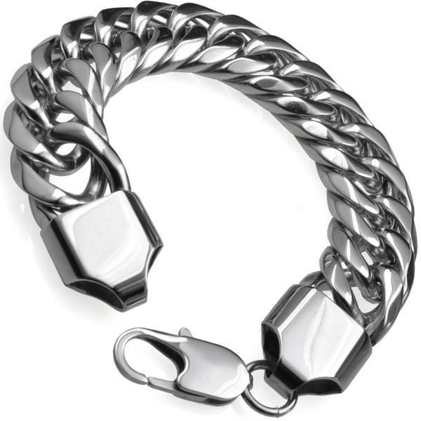 Bracelets Type: Link BraceletsGender:Men or WomenMetals Type: Stainless steelOrigin:CN(Origin)Fine or Fashion:FashionStyle:ClassicChain widht: 16mm widthLength: 18-24cm Length for choicePack: 1 pc