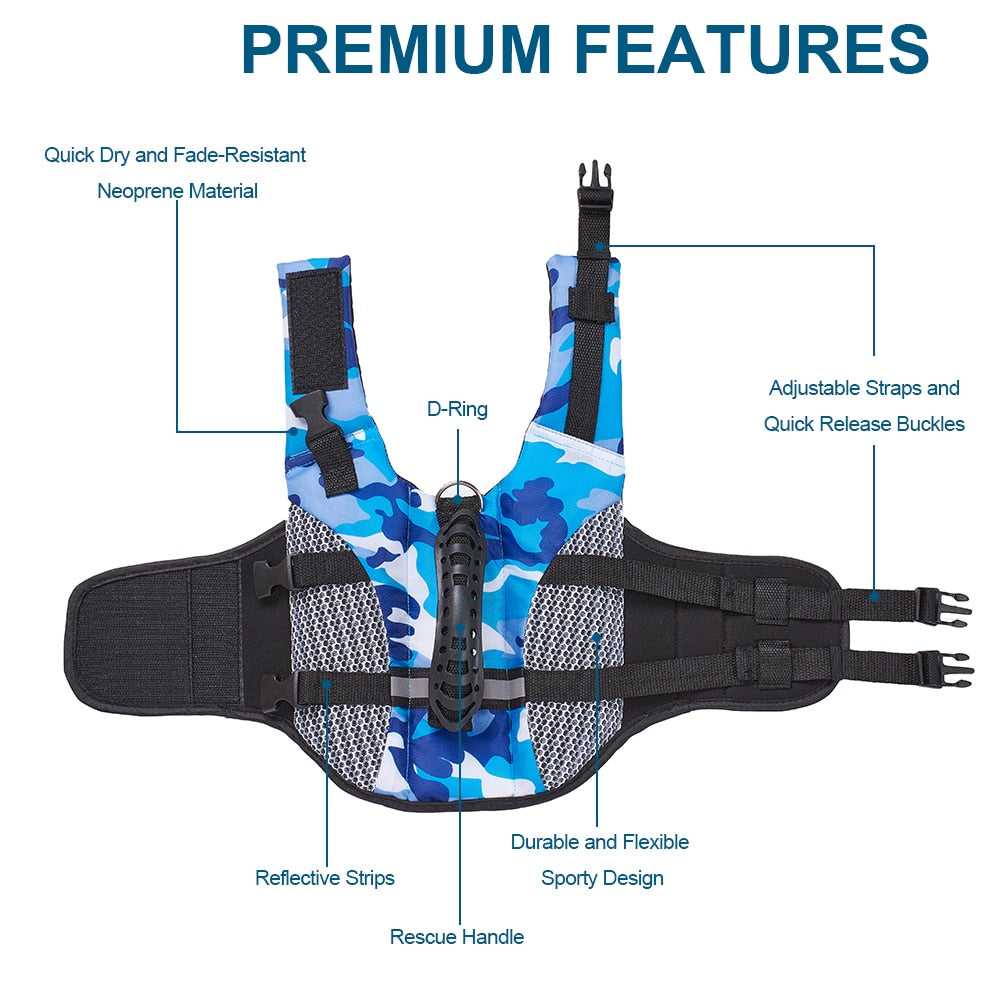 Adjustable & double safety fastening: our dog safety vest is equipped with adjustable hook and loop straps and nylon straps on the neck and underbelly. Quick-release buckles also make it easy to put on and take off. This design offers our dog a double safety protection in water.