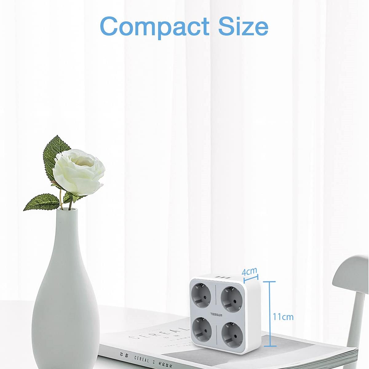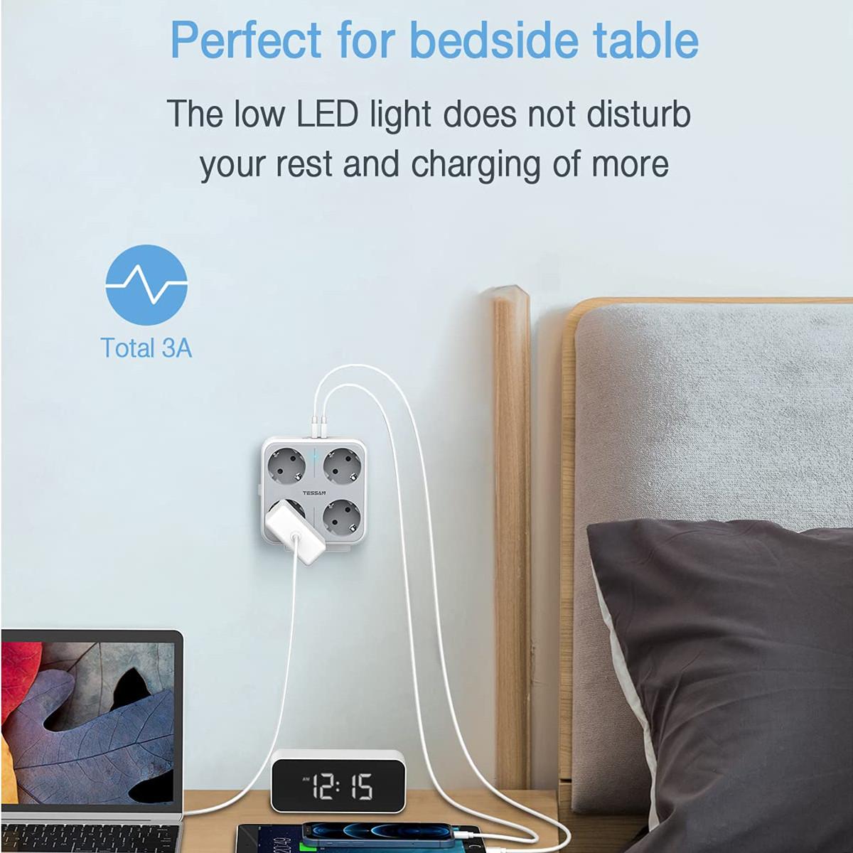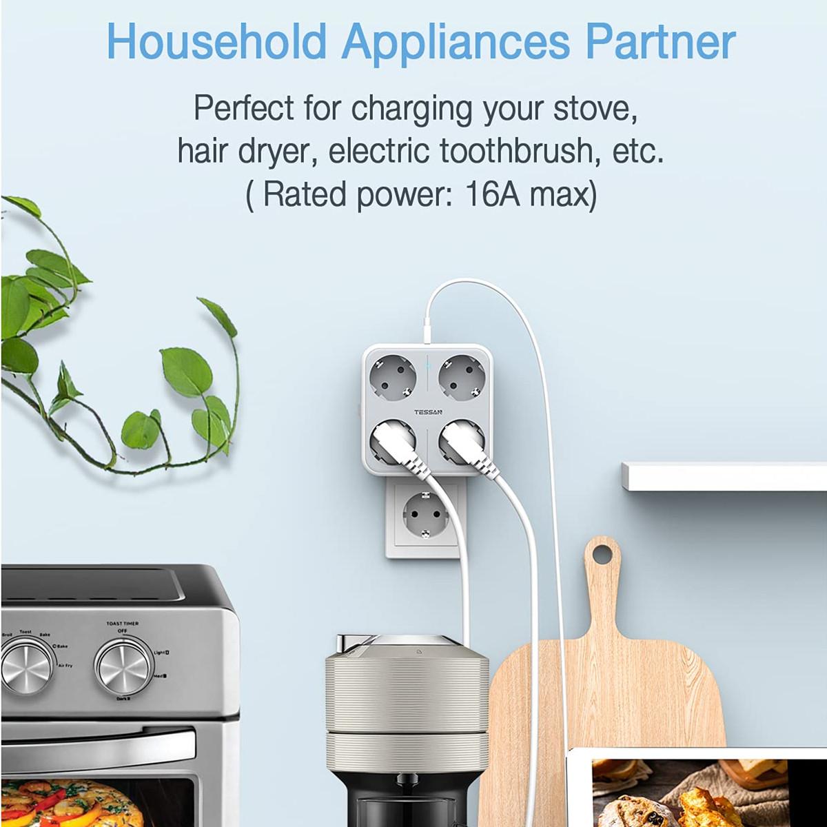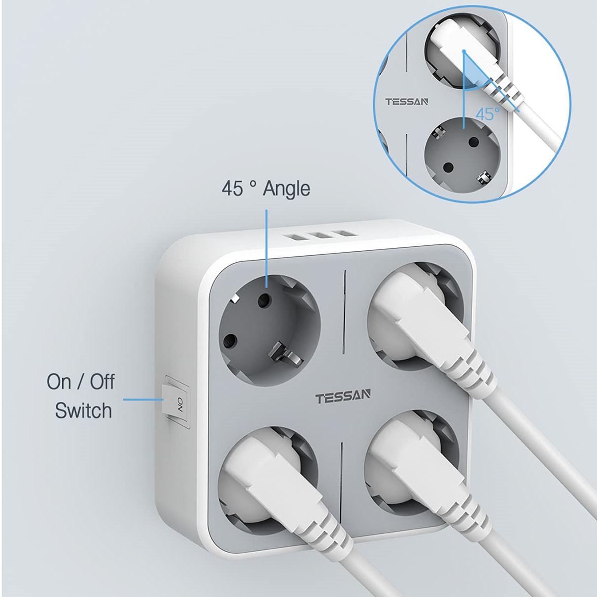 The TESSAN multi-wall socket is suitable for connection to standard German grounding sockets (4.8mm), just plug it into any Deutsch socket and you get an extension for 4-way and 3-way sockets. USB plugs. This multiple USB plug can meet your charging needs in the same place.