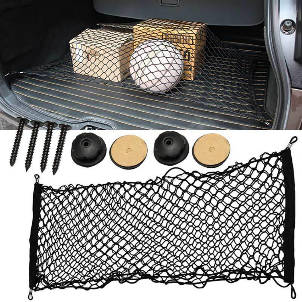 Specifications:Made of plastic material, great abrasion resistance.Strong stretch and flexible scalability.With 4 hooks, easy and convenient to install and use.Storage items, prevent to damage the items and keep your car tidy and clean.Type: Car Cargo NetStyle: UniversalMaterial: PlasticFeatures: Elastic, Car Net, Luggage Organizer, Solid ColorOpening Size: 110cm x 50cm/43.31 x 19.69 (Approx.)Notes:Due to the light and screen setting difference, the items color may be slightly different from the pictures.Please allow slight dimension difference due to different manual measurement.Package Includes:1 x Car Cargo Net(Others Not Included)4 x Buttonhole4 x Hooks4 x Screws