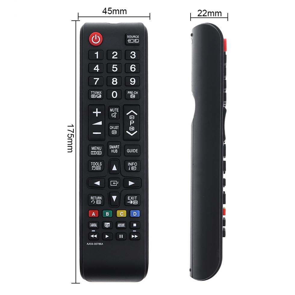 Features: - TV remote control AA59-00786A can compatible with most of its LCD, LED or plasma TVs under the brand for Samsung.- No programming or set up required.- Dedicated menu navigation keys, direct channel access for digital TV.- Requires 2 x "AAA" batteries(not included), retains codes when changing batteries.- Farther transmitting distance, stable performance.- This is the dedicated replacement remote control and it covers all the functions of original remote.Model Number: AA59-00786AType: TV Remote ControlMaterial: ABSColor: BlackWireless Communication: IRTransmission Distance: 8MFrequency: UniversalPower: 2 x AAA Batteries(not included)Package Weight: 60.0 G / 2.12 OuncesPackage Dimensions (L*W*H): 180*50*20 MM / 7.09*1.97*0.79 InchesRetail Packaging: No, No PackingPacking list1 x TV Remote Control