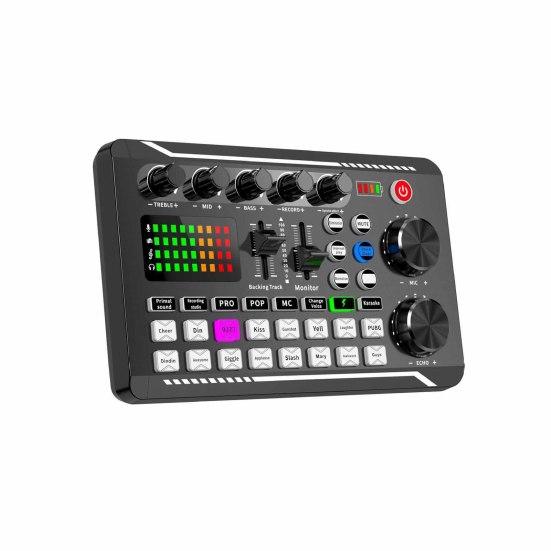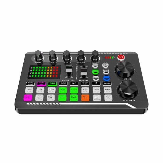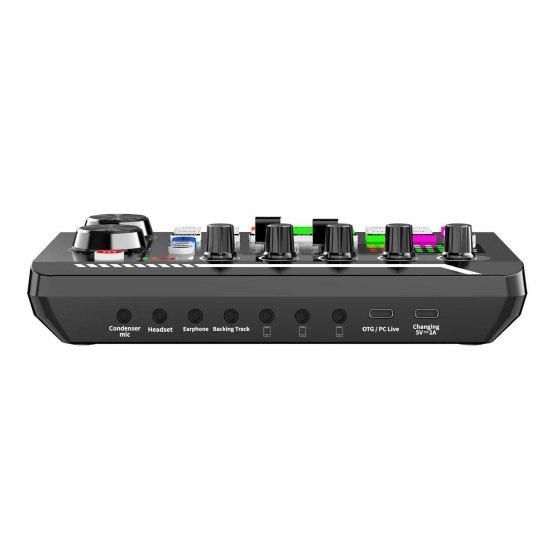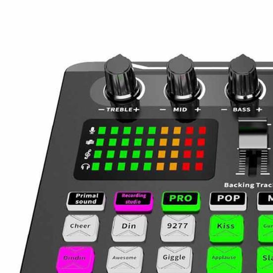 It is universal for mobile phones and computers. And it has complete functions and simple operation. It has one-key voice change, electronic tone, professional-level electronic tone adjustment, customized and personalized different electronic tone to change different sounds. And it can also warm up ambient sound effects, which can vividly express mood of the live player through the ambient.