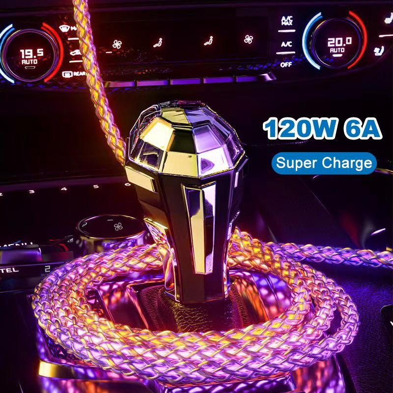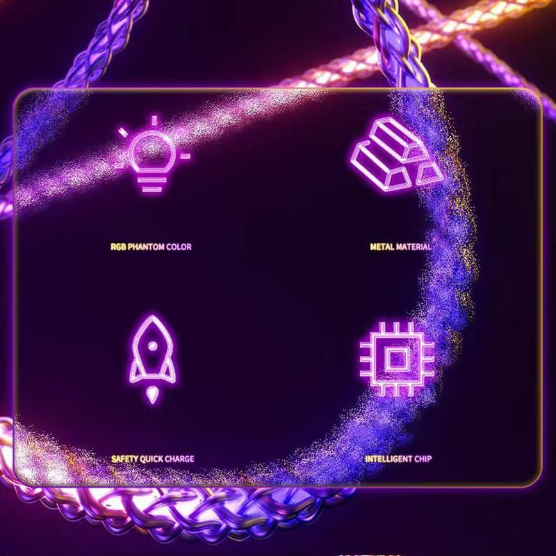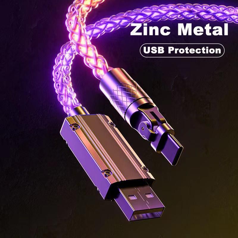 Please understand this charging cable before you buy1: The charging cable will only work at maximum power charging when your charger and phone both support fast charging.2: If your charger and phone do not support fast charging, then the charging cable is only compatible with the maximum power charging of your charger or phone.(For example, if your charger is only 55W, then the charging cable can only support a maximum of 55W charging power)3: This product supports fast charging, but some Samsung phones and Google are not compatible with this charging cable, because some Samsung phones and Google phone charging protocol version and this charging cable is not compatible.Features:RGB Symphony 180 data cableBreathing gradient RGB colorful streamer data cable makes charging colorful and fashionableUpgraded alloy wire head is wear-resistant and more durable Alloy joints are used, and cheap hollow plastic heads are rejected to avoid hidden dangers in safe useRevolutionary flash charging experience Supports high-power flash charging 6A large power, real flash charging is not fakeChange to car atmosphere light in seconds Night charging is not dark, increasing driving safety and showing personality, closing the door is a nightclubCharging and transmission are correct Charging and transmission do not interfere with each other, high transmission rate and large files can be easily transferredWhile charging while playing without slowing down With fast charging charger mobile phone while charging while playing without slowing downBreathing gradient soft light is not dazzling Soft and not dazzling, does not disturb sleep at night to find a mobile phone without turning on the lightSmart chip, precise speed controlSmart control of flow speed, automatic adjustment of flow rate according to mobile phone powerHigh-transparency pure copper braided wire body is not knotted or entangled Using high-end single crystal copper wire manufacturing process to make the wire body more texturedSafe and fast charging without getting hot Safe and fast charging without getting hot Refreshing charging without getting hot and not hurting the phoneRGB Gradient Symphony Makes Life More Exciting In the joyous atmosphere at night, with breathing RGB illusion data cable, the atmosphere is even betterProduct information:Name: VAORLO RGB 180 Rotating Fast Charging Data CableColor: Transparent Colorful GradientInterface: Micro/Type/iPhone(Lightning)Length: 1MMaterial: Metal + BraidedMaximum Output Power: 120W (Requires 120W Power For Both Mobile Phone And Charger)Data transmission: YesPackage list:1 x VAORLO RGB 180 rotating fast charge data cable1 x Cable Organizer