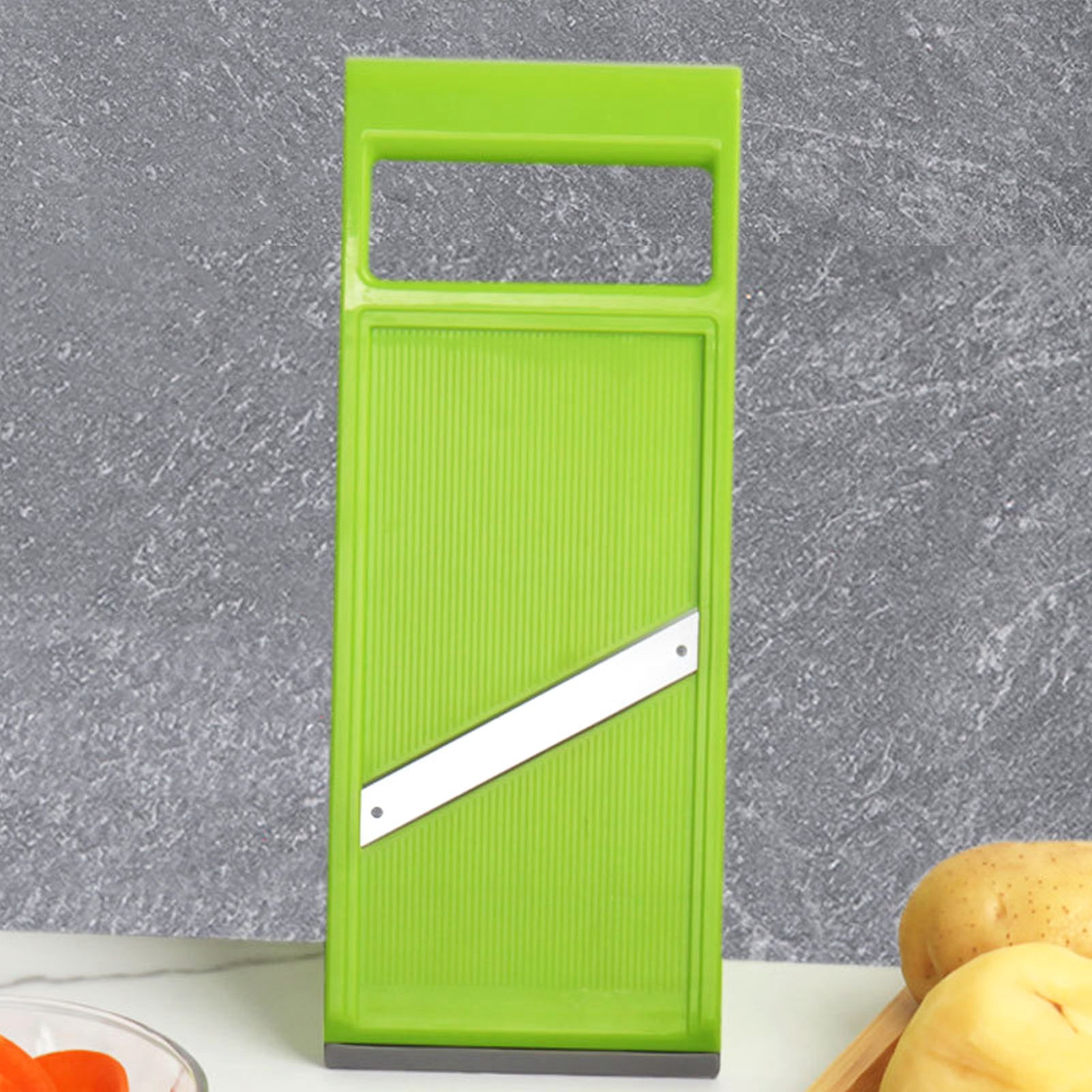 1Ergonomic Handle: Ergonomic handle is firmly gripped to prevent the grinder from sliding, less pressure and safer to use. 2Hanging Hole: Vegetables chopper is easier to store and has a hanging hole to save space and make life easier. 3Easy to Clean: Hang on the wall or put in cabinets and drawers to dry, easy to clean in the dishwasher, be careful when cleaning. 4Stainless Steel: Stainless steel material, strong and rustproof, direct contact with food safety, providing a long life for your kitchen. 5Scope of Application: Handheld kitchen cutter is suitable for most fruits and vegetables, such as potatoes, carrots, onions, etc.