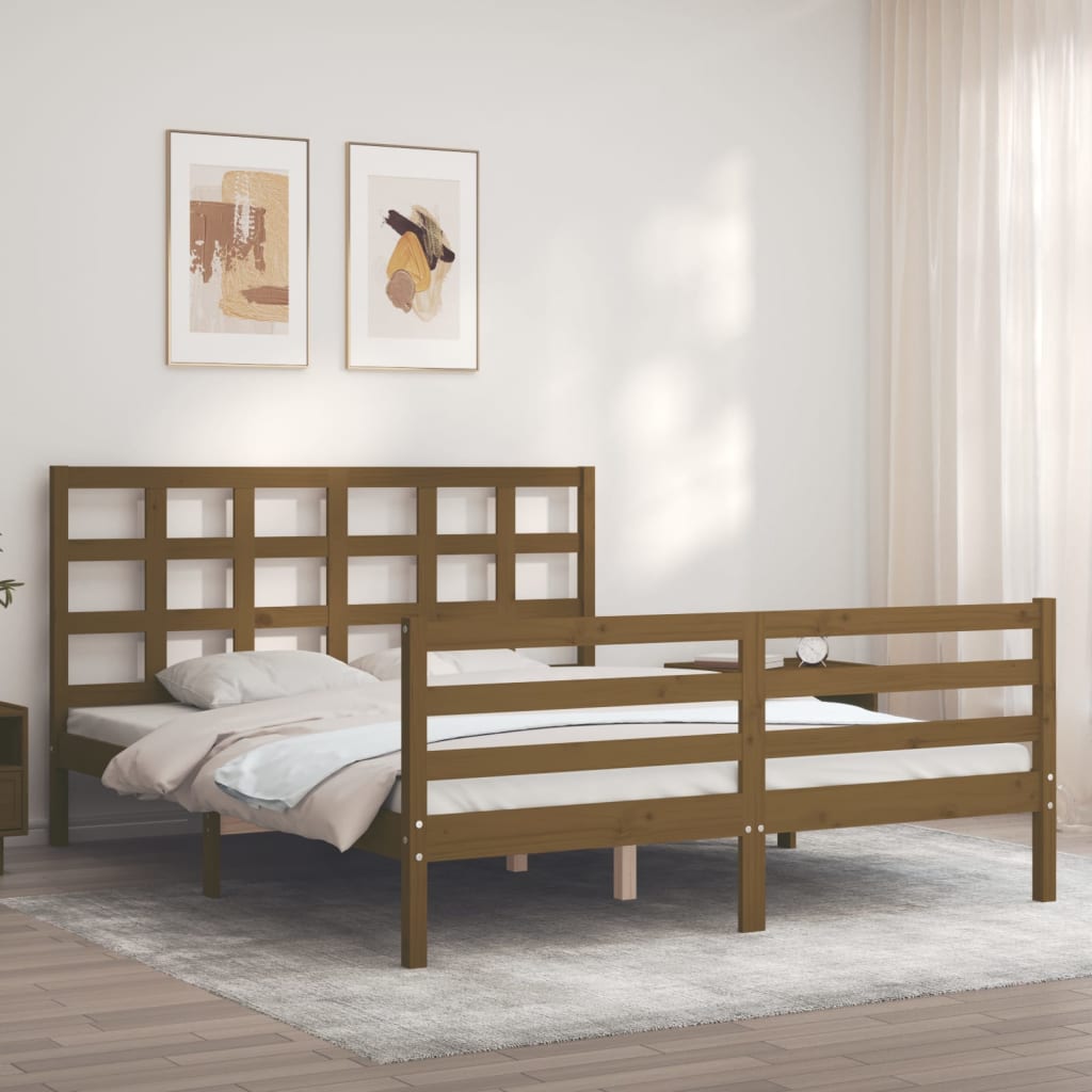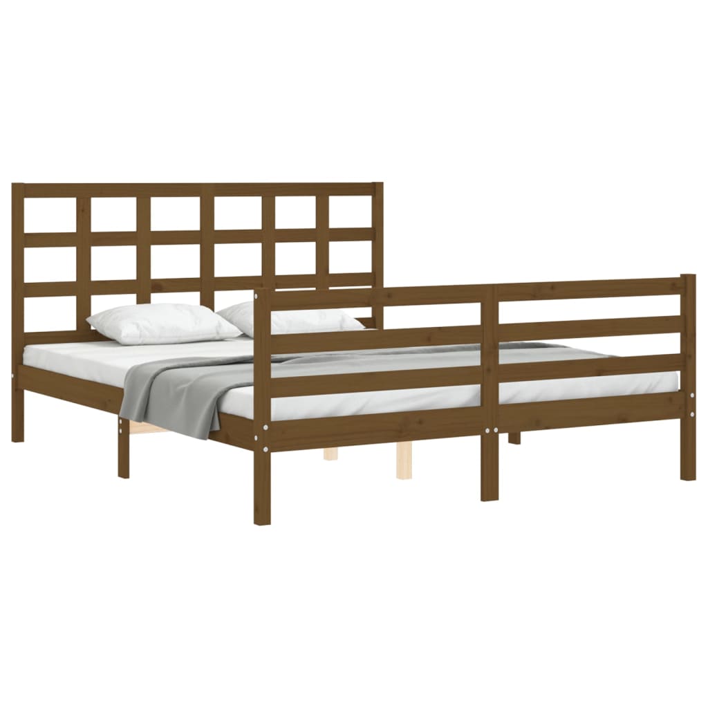 Enjoy a good night's sleep in this wooden bed frame! It makes a practical and decorative addition to your interior. Durable material: Solid pine wood is a beautiful natural material. Pine wood has a straight grain, and the knots give the material its signature, rustic look. Made of solid pinewood, this bed is sturdy and durable.Plywood slats: The plywood slats provide good weight distribution, ensuring your mattress with much-needed support and breathability.Functional headboard and footboard: The headboard and footboard of the wooden bed can keep your mattress in place. Also, the headboard provides you with excellent back support when you sit up in bed to read or watch TV. Good to know:A mattress is not included with this bed. We do offer a various selection of mattresses. You can check our shop for a matching mattress.