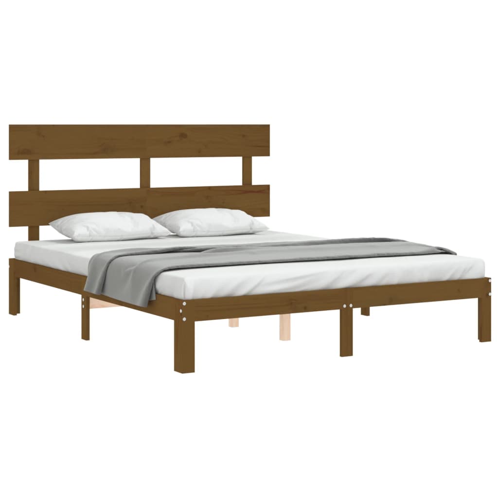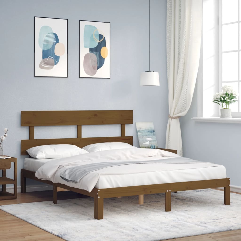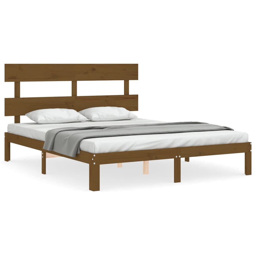 Enjoy a good night's sleep in this wooden bed frame! It makes a practical and decorative addition to your interior. Durable material: Solid pine wood is a beautiful natural material. Pine wood has a straight grain, and the knots give the material its signature, rustic look. Made of solid pinewood, this bed is sturdy and durable.Plywood slats: The plywood slats provide good weight distribution, ensuring your mattress with much-needed support and breathability.Excellent support: The headboard of the wooden bed provides you with excellent back support when you sit up in bed to read or watch TV. Good to know: A mattress is not included with this bed. We do offer a various selection of mattresses. You can check our shop for a matching mattress.