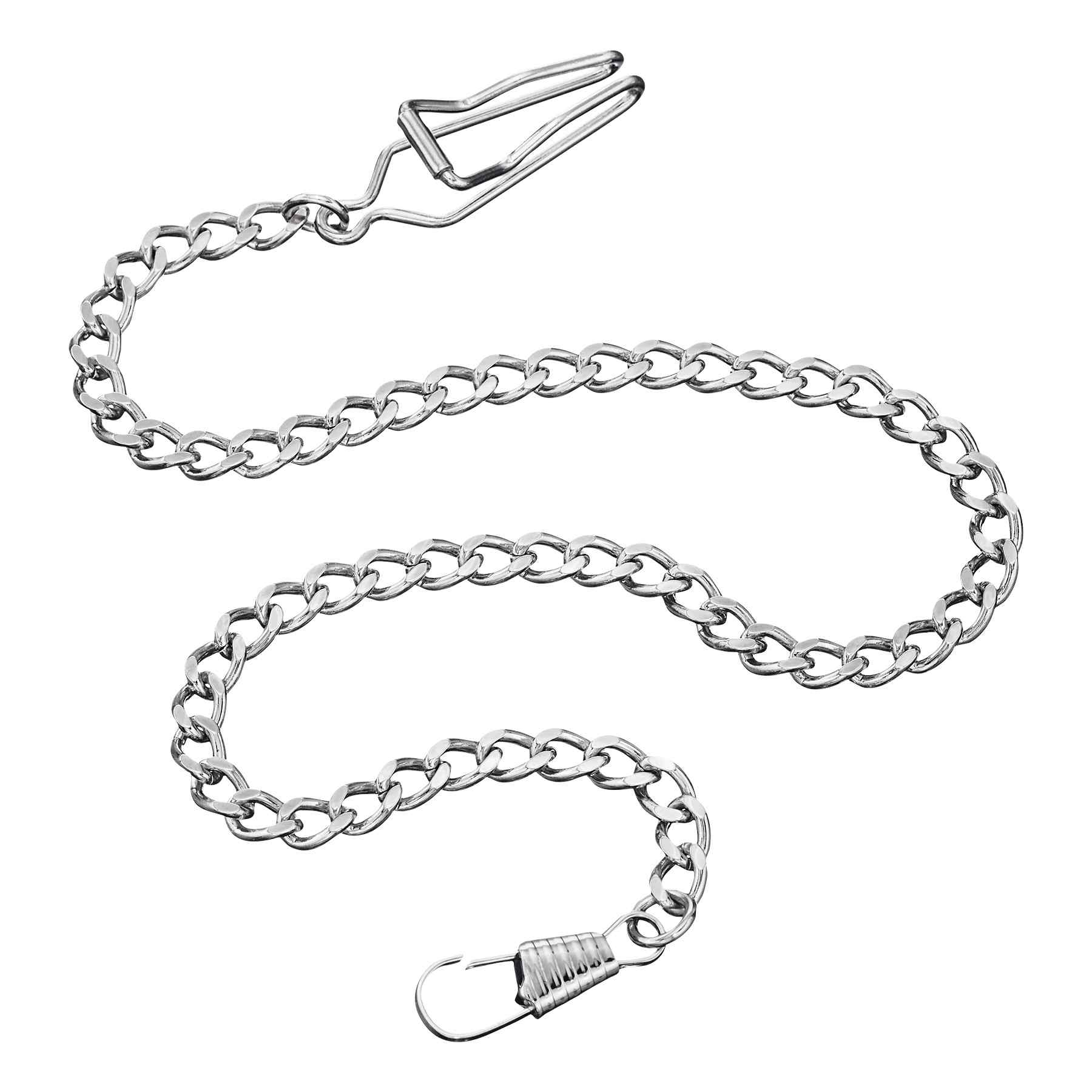 Stainless Steel Pocket Watch on Silver Tone Chain, White Dial, with Black Accents