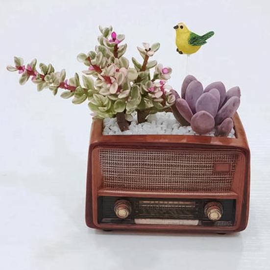It is a chic retro radio shaped flowerpot, its delicate details and fine workmanship make it looks unique and attractive. It is suitable to plant bonsai or other plant in garden to decorate your home because this flowerpot has ventilation bottom and chic style. This flowerpot is made of resin, it is durable and practical. The length of this flowerpot is 12.5cm, width is 8.5cm and height is 6.5cm. It is suitable to used in garden, home, living room or office .