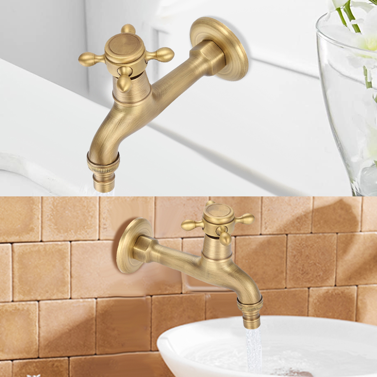 Vintage Solid Brass Single Handle Faucet For Washing Machine Wall Mounted Water Tap (long)