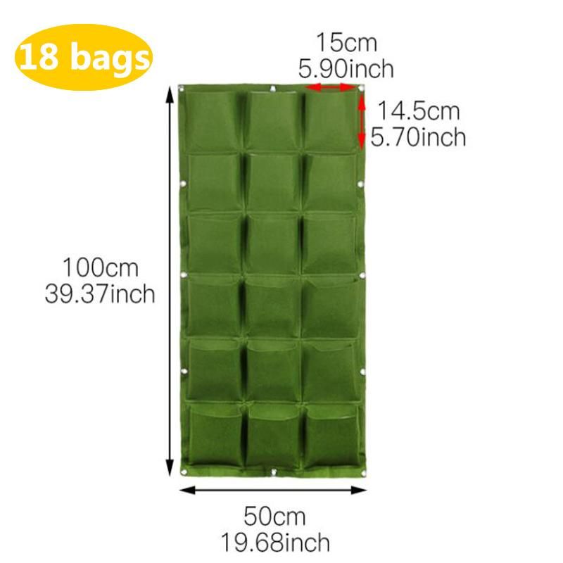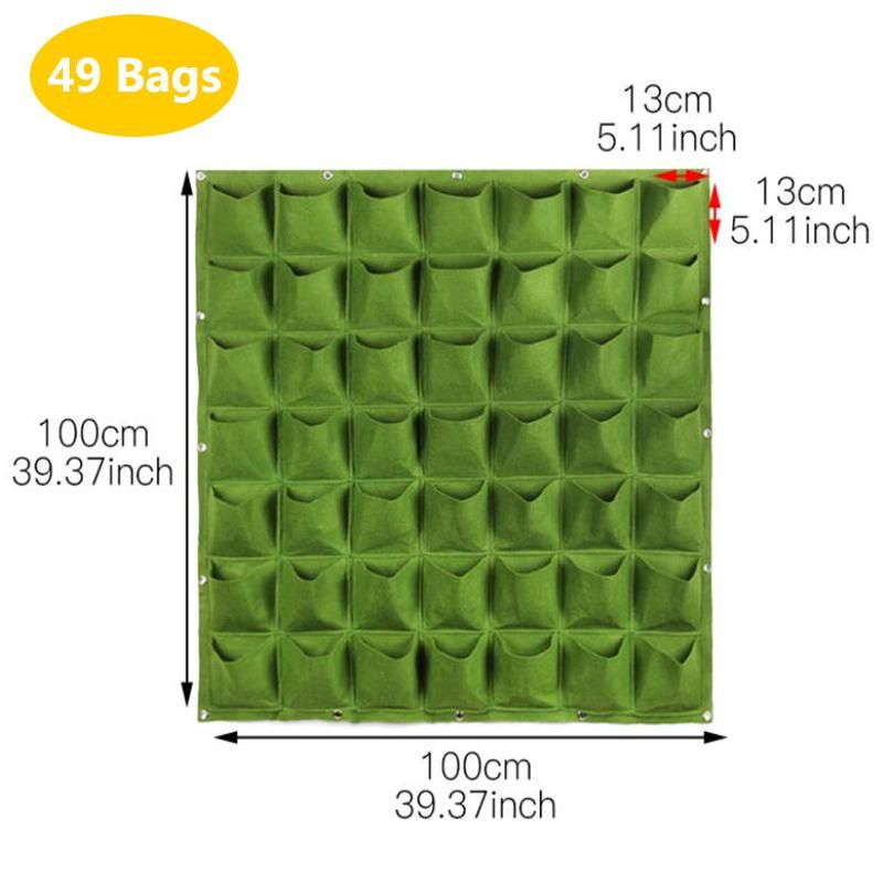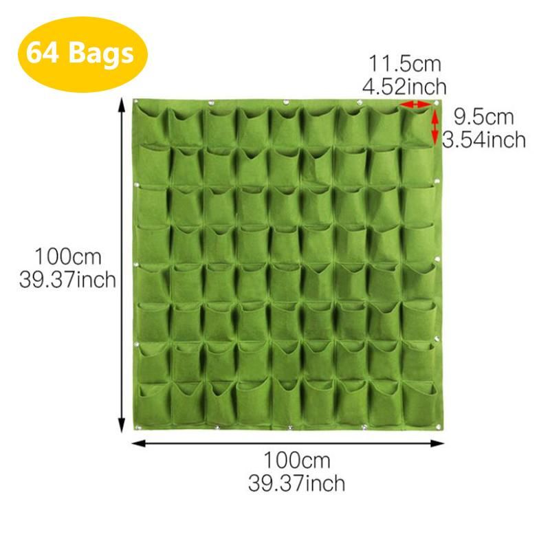 wall flower Grow Bags pocket vertical garden Planting Hanging home plant tools fabric Vegetable planter jardin growing potsSpecification:Size: As followsColor:green/blackQuantity: 1 PieceFeature:1.Reusable, portable, economical and practical.2.The felt material, meet environmental standards, non-toxic biodegradable, anti ultraviolet, anti-corrosion, sunscreen, heat.3.Hanging on the walls, save space, planting strawberries, vegetables, foliage plants.4.Excess water will automatically drain through felt material. Soft felt, lightweight design for easy movement and hanging.5.The green wall is a new type of indoor and outdoor wall greening, green to your walls and to make it more beautiful; also suitable for indoor decoration, a large piece of green wall of collocation's green plants can make people feel comfortable.Package Includes:1*Wall Hanging Planting Bags