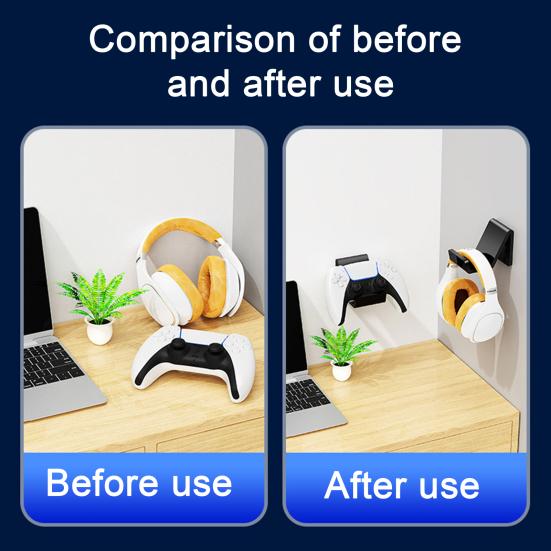 Heavy-duty and stable design ideal for gaming desks or console stations.Wide curved seat bed suitable for almost all types and sizes of gaming headsets.Wall-mountable for better desk management and a tidier room.Simple structure design for easy installation and use.Convenient way to keep the desktop clean after gaming.Description:Introducing the handle bracket, the perfect accessory for any gaming setup. Its heavy-duty and stable design makes it ideal for use on any gaming desk or console station. The wide curved seat bed is specifically designed to accommodate almost all types and sizes of gaming headsets, providing a secure and convenient storage solution. The stand can be easily mounted on the wall, helping to keep your desk organized and your room looking tidy. With its simple structure design, the game controller bracket is easy to install and use. After playing games, simply hang your controllers on the bracket to keep your desktop clean and clutter-free. Experience the convenience of a tidy gaming space with the handle bracket - a must-have for any gaming enthusiast.Item Name: Handle BracketMaterial: AcrylicFeatures: Wall Mounted, Punch-free, Heavy-Duty, Multi-functionalSize Details:L: 8.2cm, W: 6cm, H: 6cm (Approx.)Notes:Due to the light and screen setting difference, the item's color may be slightly different from the pictures.Please allow slight dimension difference due to different manual measurement.Package Includes:1 x Handle Bracket