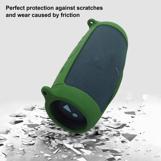 Featuring reserved charging port design, this protective case can be charged conveniently without removing the case.It is worthwhile to buy this protective case because it can effectively protect your Bluetooth-compatible speaker from scratch, bump, water to ensure long service life.Made of silicone material, it is soft, skin-friendly and comfortable to use.The length of this product is 23cm, the width is 10.5cm, and the height is 9cm.It is compatible for JBL Charge 5. It is easy to install, the horseshoe-like design allows easy placement of speakers and their cables.Item Name: Protective CaseMaterial: SiliconeColor: Black, Red, Grey, Blue, Green, OrangeCompatible Model: for JBL Charge 5Features: Waterproof, Impact Resistant, PortableSize Details: 23cm x 10.5cm x 9cm/9.06" x 4.13" x 3.54" (Approx.)Notes:Due to the light and screen setting difference, the item's color may be slightly different from the pictures.Please allow slight dimension difference due to different manual measurement.Package Includes:1 x Protective Case(Speaker Not Included)1 x Shoulder Strap