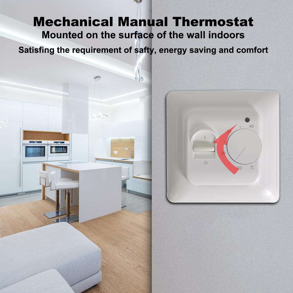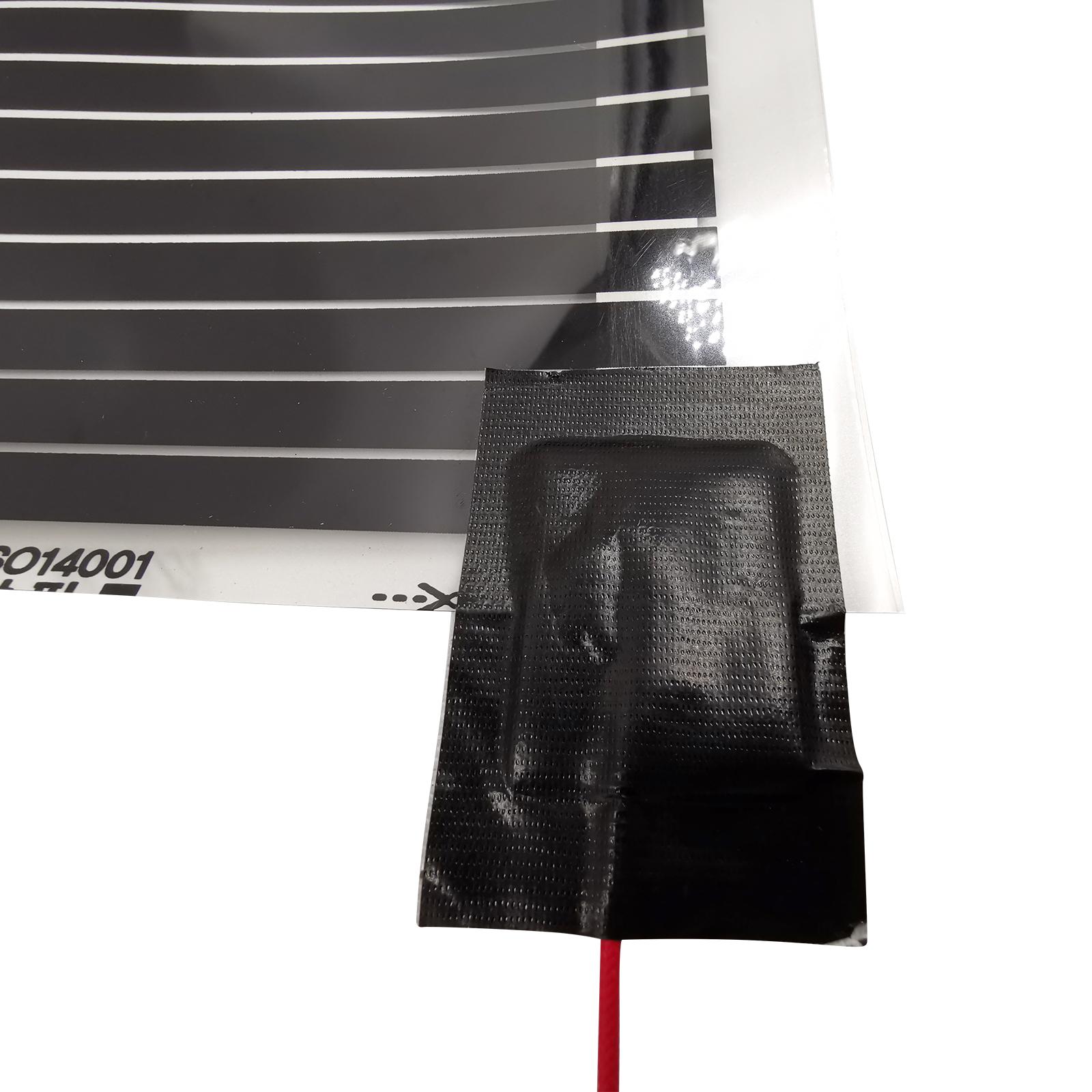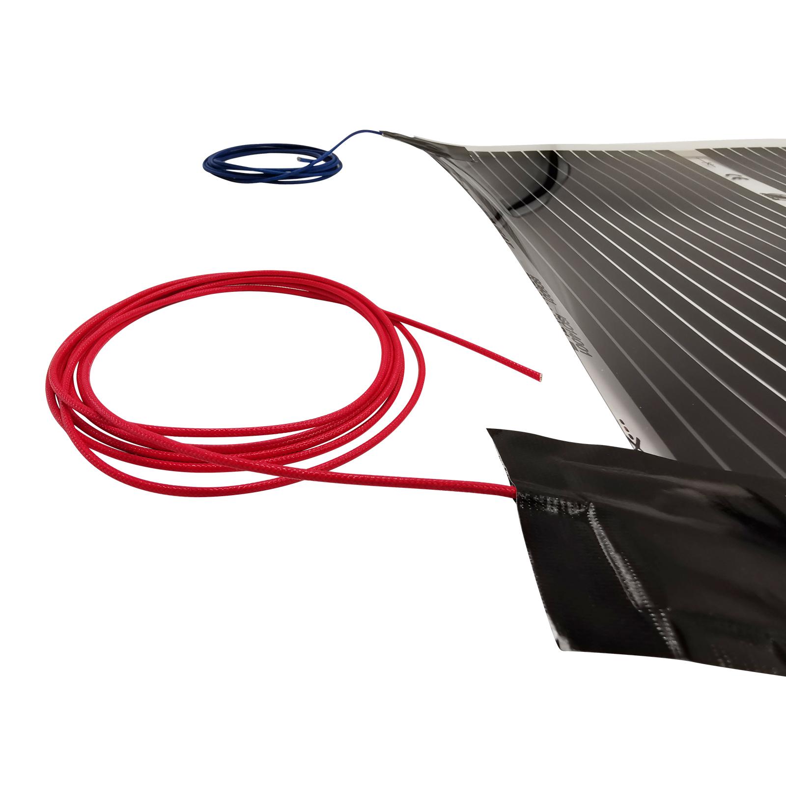 Heating Film Specifications:Working voltage: AC220-240VRated power: 220W/m2 10%Max surface temperature: 45 CMelting Point Film: 130 CThichness: 0.338mmWidth: 50cmInfrared radiation: 90,4%Wave Length: 5-20 umEach mat has wires pre-attached for ease of installation.(roll out, cut length to fit if needed and run pre-attached wires to a wall thermostat)EASY INSTALLATION - 3 Simple Step Process (1. Install Underlayment, 2. Roll Out Electric Radiant Heat Film 3. Install final floor covering).MINIMAL THICKNESS PROFILE - Ultra-thin (less than .016 ) heated panels keeps same floor heights through room transitionsPROVIDES UNIFORM HEAT - Your floor is heated uniformly with no gaps and the radiant heat is dispersed evenly through the roomThe system, which sports an impressive efficiency, includes temperature limiting properties so the film does not overheat. Also the heat will never exceed 100 degree F, allowing your feet to have the perfect temperature.IDEAL FIT: Constructed from ultra-thin conductive ink film technology, made ideally for floating floors including luxury, vinyl, and laminate hardwoodsCOST LESS TO OPERATE - Even heat distribution allows the Quiet Warmth systems to cycle quicker resulting in less energy consumptionMAINTENANCE FREE - Crafted to not completely shut down if the system should ever become compromised or damagedThermostat Specifications:Certification : CEColor : WhiteMaterial : Anti-flammable PCWorking Voltage : AC220~240V 50/60HzPower consumption: 5VATemperature control range: 5~40 degree centigradeTemperature limit range: 25~55 degree centigradePower save mode temperature: 5 degree centigradeTemperature deviation: 0.5KDegree of protection provided by enclosure: IP20Outer sensor: Length of cable: 3MApplication :Mounted on the surface of the wall indoorsTemperature range: 5-40 degree centigradeApplied in the auto-control system of space heatingLED turned on while heatingSatisfing the requirement of safty, energy saving and comforM5.16 type used for electric floor heating, like electric heating cable, electric heating film, electric heating mat and other electric heaters.The thermostat have outside sensor :the outside sensor can detect the ground temperature, it will stop heating when the ground temperature reach about 35.Package including:wires pre-attached Heating Film(Size according to your choice1*thermostat1*3m floor sensor2*mounting screws1*English user manual.