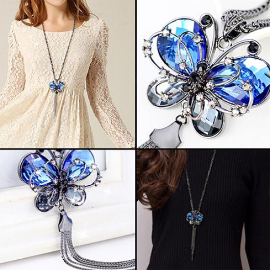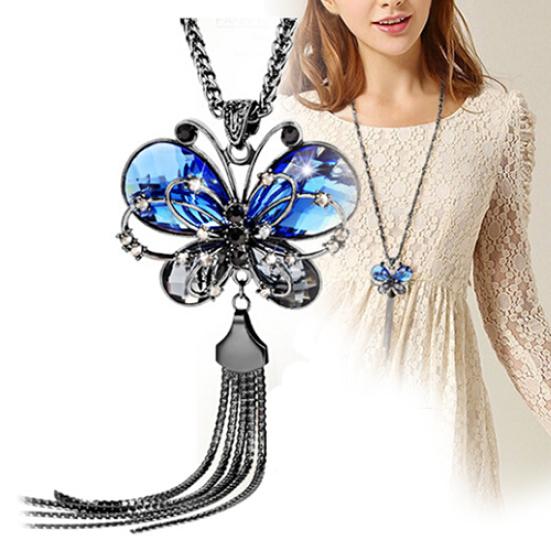 Specifications:Blue butterfly with tassels, elegant and stylish.Perfect craftsmanship, long alloy sweater chain.It is a perfect ornament to make you look charming and sassy. Type: NecklaceGender: WomensTheme: BeautyStyle: FashionColor: Blue, SilverMaterial: Copper,Zricon, RhinestoneOccasions: Evening Party, Wedding, Banquet, Daily Life, GiftFeatures: Beautiful Butterfly, Tassels, Long Chain, Rhinestone InlaidPendant Size: 15cm x 5.3cm(Approx.)Chain Length: 70cm(Approx.) Notes:Due to the light and screen setting difference, the items color may be slightly different from the pictures.Please allow slight dimension difference due to different manual measurement. Package Includes: 1 x Necklace