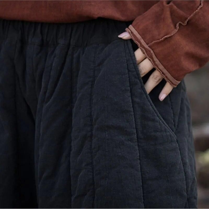 Season : All seasonAge : SENIORPlace Of Origin : China (Mainland)Pant Style : BloomersFront Style : FlatWaist Type : MIDPattern Type : SolidClosure Type : Elastic WaistFit Type : Loose FitStyle : vintageLength : Full LengthGender : WOMENOrigin : Mainland ChinaBrand Name : JohnatureLabel: Yes Material: Linen 50%, Cotton 50%Washing Care: Hand or machine wash maximum temperature 30, line dry, iron at low temperatureSize: One SizeLength: 90cmWaist: 62cmHip: 166cm