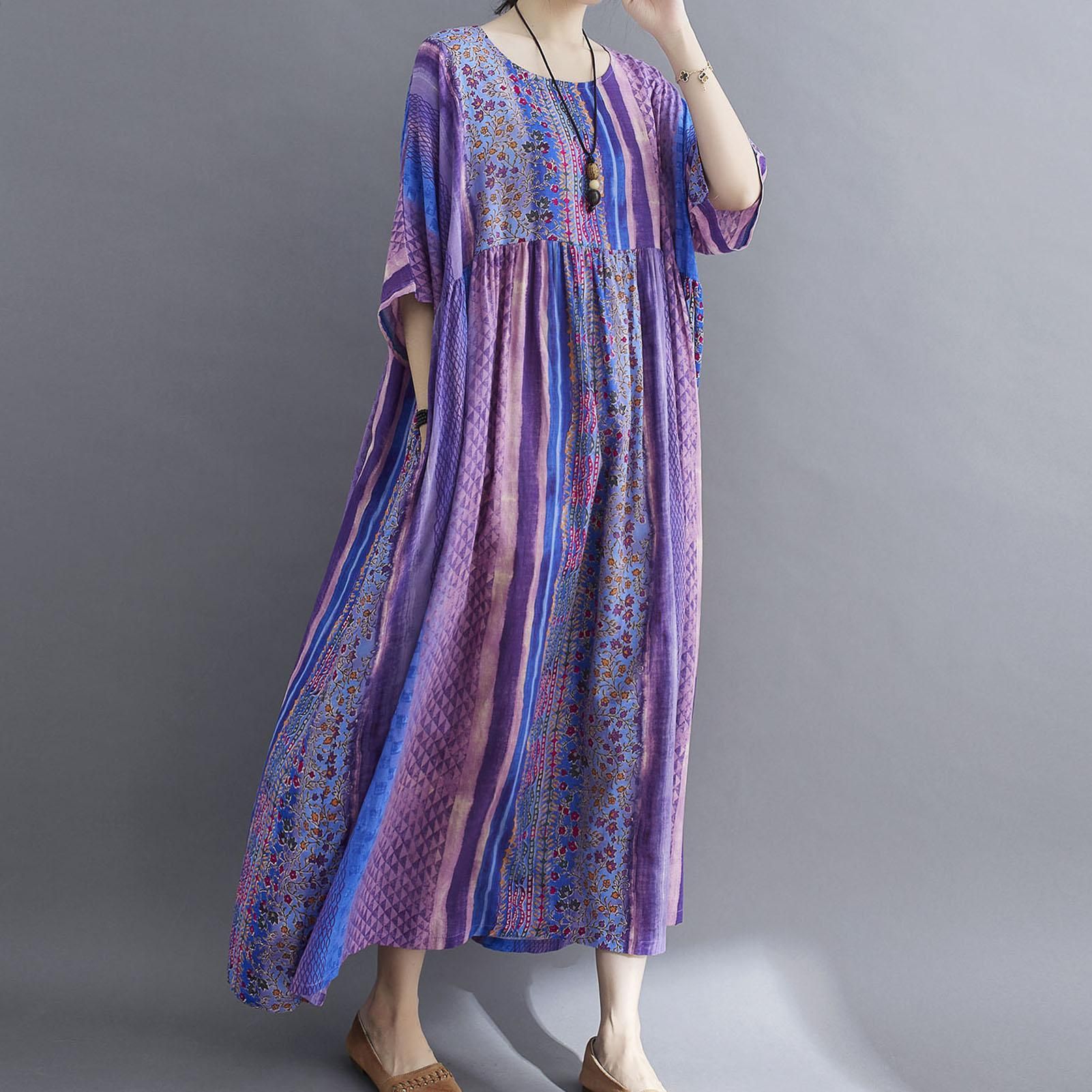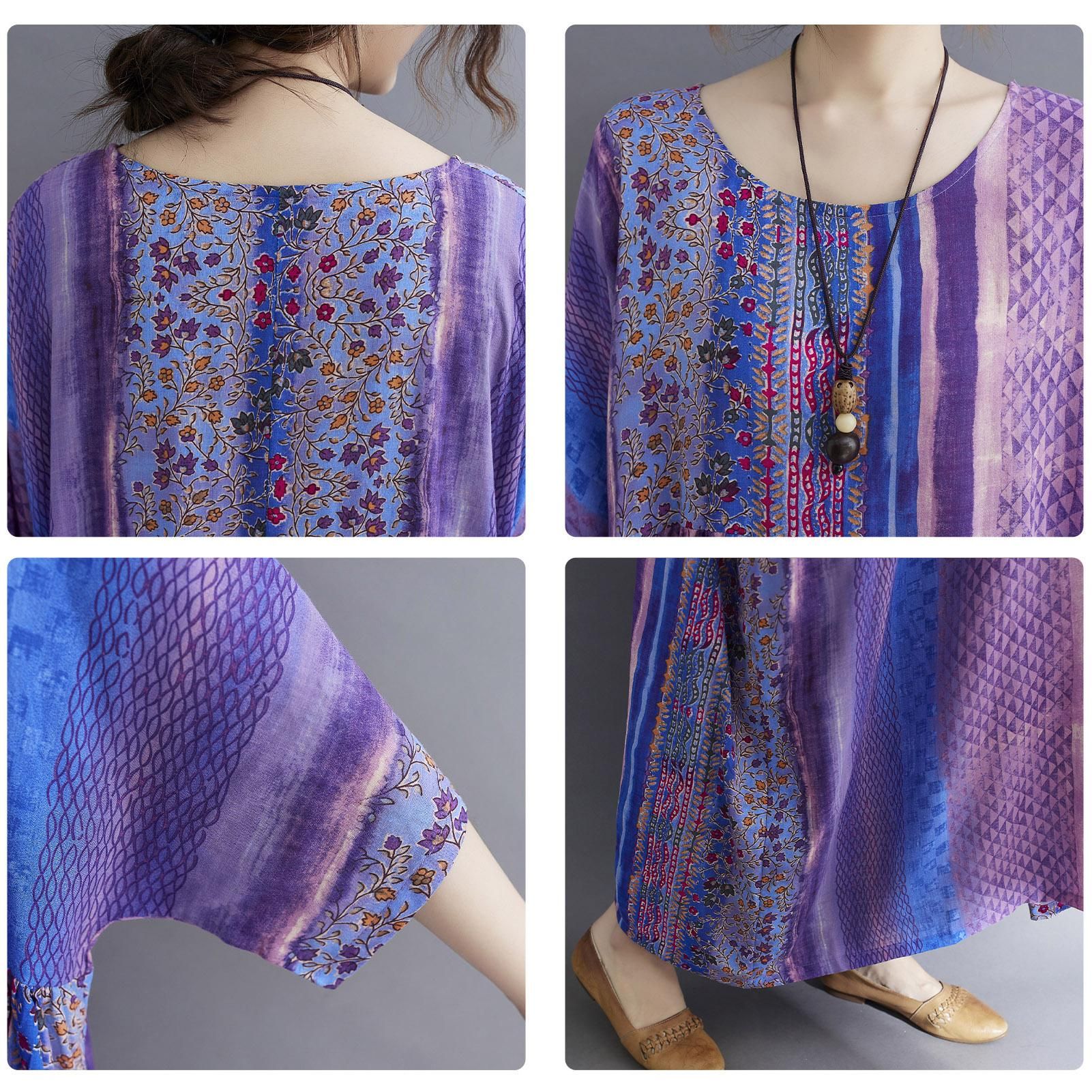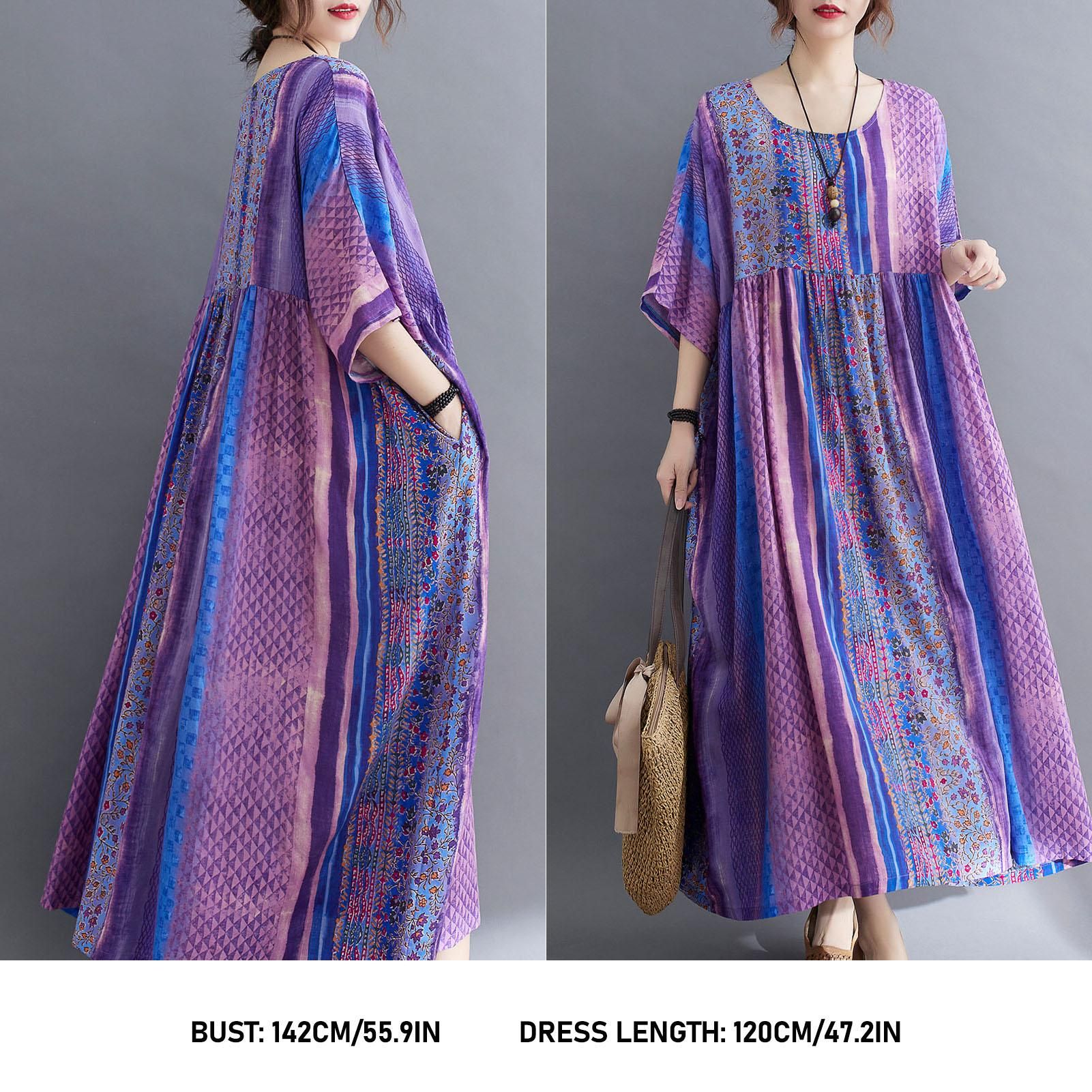 Description:Half sleeved dress in floral print for summer. It has round neck, side pockets and loose silhouette for beach, streets and holiday. Have it to pair flats and sunhat.Features:Casual dress in cotton and linen blend fabric is breathable to wear in summer.Loose silhouette with round neck, half sleeves, and high waist.Floral print brings a vintage feeling. Side pockets for carrying small items.Fits for streets, home and holiday.Cut with a relaxed fit. Bust:55.9"/142cm, Length:47.2"/120cm.Specifications:Size: One SizeAge Group: AdultGender: WomenColor: Green / Blue / Orange / Purple / Dark Purple (optional)Material: Cotton & LinenNeckline: ONeckWaistline: EmpireSleeve Length: HalfPattern Type: FloralDecoration: PocketsStyle: CasualWeight: Approx. 300g / 10.6ozOne SizeBust: 142cm/55.9inDress length: 120cm/47.2inNote:1. This clothing size information is just for reference only, please allow 12cm (0.40.8") differences due to manual measurement, thanks.2. Item color displayed in photos may be showing slightly different on your computer monitor since monitors are not calibrated same.Package List:1 * Dress