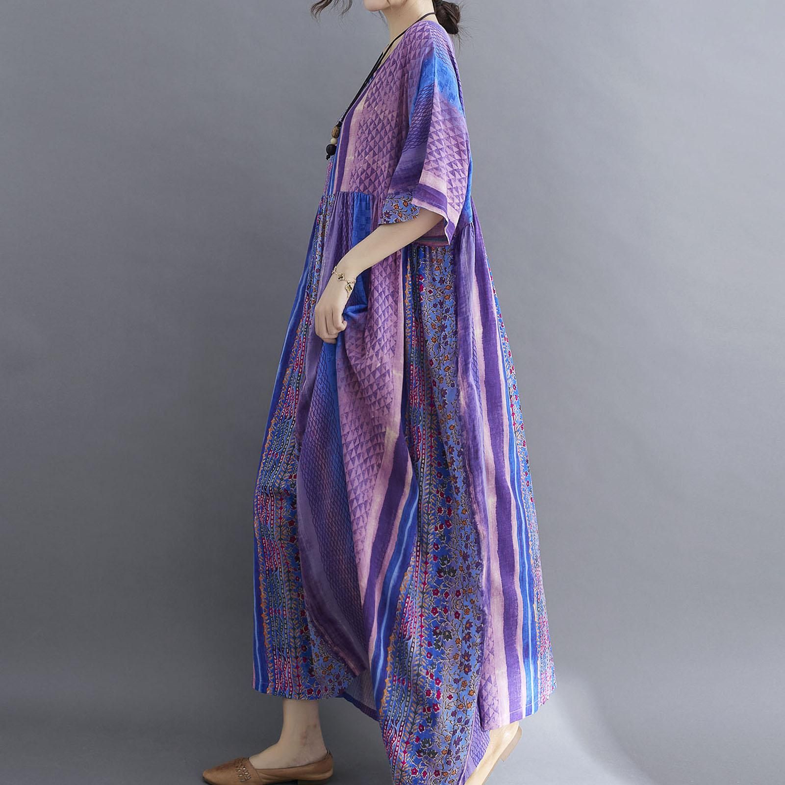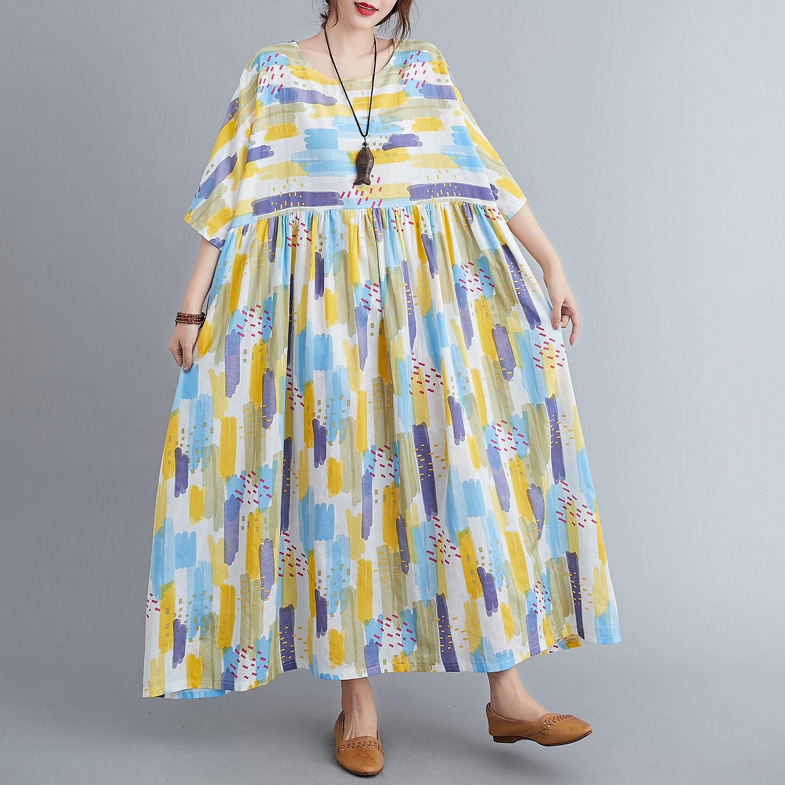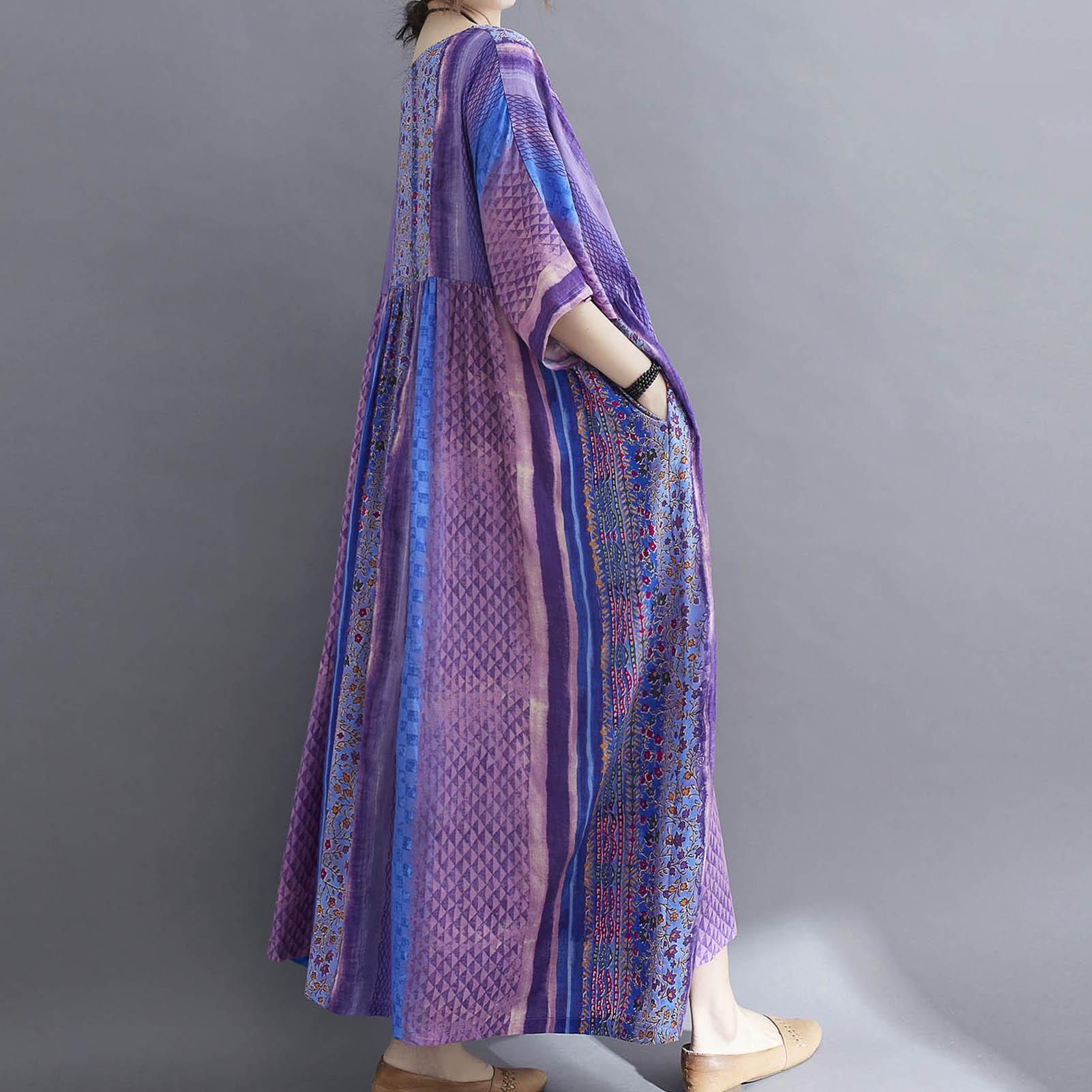 Description:Half sleeved dress in floral print for summer. It has round neck, side pockets and loose silhouette for beach, streets and holiday. Have it to pair flats and sunhat.Features:Casual dress in cotton and linen blend fabric is breathable to wear in summer.Loose silhouette with round neck, half sleeves, and high waist.Floral print brings a vintage feeling. Side pockets for carrying small items.Fits for streets, home and holiday.Cut with a relaxed fit. Bust:55.9"/142cm, Length:47.2"/120cm.Specifications:Size: One SizeAge Group: AdultGender: WomenColor: Green / Blue / Orange / Purple / Dark Purple (optional)Material: Cotton & LinenNeckline: ONeckWaistline: EmpireSleeve Length: HalfPattern Type: FloralDecoration: PocketsStyle: CasualWeight: Approx. 300g / 10.6ozOne SizeBust: 142cm/55.9inDress length: 120cm/47.2inNote:1. This clothing size information is just for reference only, please allow 12cm (0.40.8") differences due to manual measurement, thanks.2. Item color displayed in photos may be showing slightly different on your computer monitor since monitors are not calibrated same.Package List:1 * Dress