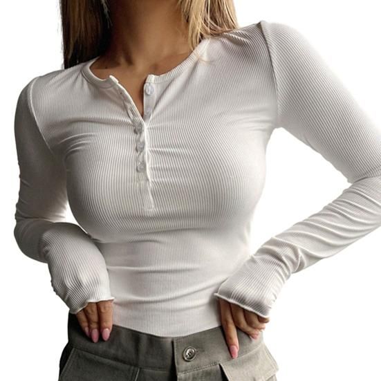 Lightweight and super-soft polyester fabric for ultimate comfort.Stylish round neck and long sleeves with a trendy button design.Regular fit to accentuate your perfect figure.Versatile - pair with skinny jeans, leggings, sandals, or high heels.Perfect for casual street style, office, vacation, parties, and more. :Introducing our versatile and stylish women s long-sleeved top, perfect for any occasion. Made from lightweight and super-soft polyester fabric, this top is incredibly comfortable and will keep you looking and feeling great all day long. The round neck and solid color design, along with the stylish button detail, add a touch of elegance to this casual piece.The regular fit is flattering and will show off your perfect figure. Pair it with skinny jeans, leggings, sandals, or high heels to create a simple and fashionable look that s suitable for casual street style, office wear, vacation outings, parties, outdoor activities, leisure time, or even for work. This top is a must-have addition to any woman s wardrobe.Item Name: Top Material: PolyesterSize Type: RegularStyle: CasualGender: WomenLength: Mid Length Neck: O Neck Sleeve Length: Long SleeveSeason: Fall, Spring, WinterFeatures: Solid Color, Soft, Breathable Size Details:Size: S, Bust: 78cm, Clothes Length: 54cm, Sleeve: 65cm(Approx.)Size: M, Bust: 82cm, Clothes Length: 55cm, Sleeve: 66cm(Approx.)Size: L, Bust: 88cm, Clothes Length: 56cm, Sleeve: 67cm(Approx.)Size: XL, Bust: 94cm, Clothes Length: 57cm, Sleeve: 68cm(Approx.)Size: 2XL, Bust: 100cm, Clothes Length: 58cm, Sleeve: 69cm(Approx.)Notes:Please refer to our size chart and choose the right size.Due to the light and screen setting difference, the item s color may be slightly different from the pictures.Package Includes:1 x Top