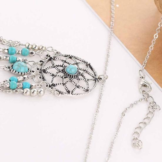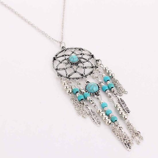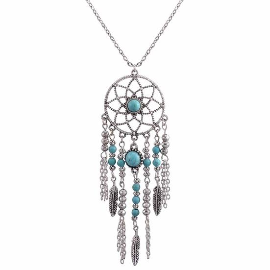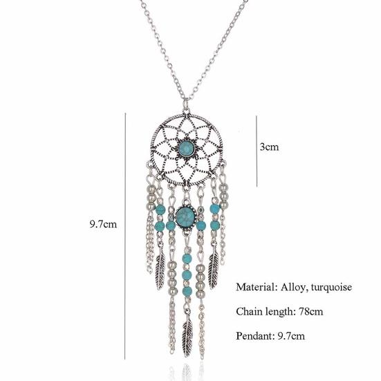 Specifications:Features: Dreamcatcher Design, Turquoise Inlaid, Feather & Fringed Chain Charm, Good LusterPendant Length: 9.7cmSure to make you charming and attractive.Occasions: Party, Banquet, Shopping, Dating, etcType: NecklaceNotes:This stunning necklace has a large dream catcher with hanging feather & tassel chain charms and turquoise beads.Please allow slight dimension difference due to different manual measurement.Gender: Women'sPendant Width: 3cm1 x NecklaceMaterial: Alloy, TurquoisePackage Includes:Due to the light and screen setting difference, the item's color may be slightly different from the pictures.Chain Length: 78cmA perfect jewelry to match your outfit or as a gift for your lover, fiancee, or female friends.Array