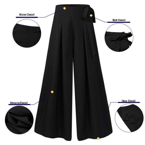 Skin-friendly and Comfortable: Made of soft polyester fiber, these wide-leg pants are perfect for all-day wear.Stylish Design: Featuring a simple solid color and waist details with bow ties, these pants offer casual comfort with a touch of elegance.Elastic Waist for Versatility: The elastic waistband adds a fashionable and casual touch, making these pants suitable for various activities.Versatile Pairing Options: Pair these wide-leg pants with T-shirts, cardigans, sweatshirts, tank tops, high heels, sandals, and more for a stylish look.Suitable for Various Occasions: Whether it's casual outings, work, parties, or travel, these loose wide-leg pants are perfect for a range of activities and events.Description:Introducing our versatile and stylish Women's Loose Wide-Leg Pants, perfect for a wide range of occasions. Made from skin-friendly and soft polyester fiber, these pants are designed for all-day comfort. The simple solid color design is accentuated by beautiful waist details with bow ties, adding a touch of elegance to the casual look. The elastic waist ensures a fashionable and comfortable fit, making you look elegant and charming whether you're exercising or working. These wide-leg pants can be paired with a variety of tops and footwear, including T-shirts, cardigans, high heels, and sandals. Whether it's for casual wear, travel, office, party, or outdoor activities, these pants are the perfect choice. Elevate your wardrobe with these stylish and versatile wide-leg pants that are suitable for any occasion.Item Name: Women PantsMaterial: PolyesterSize Type: RegularStyle: CasualGender: WomenLength: Full LengthWaist: High Waist Season: Four SeasonFeatures: Wide Leg, Loose, A-lineSize Details:Size: M, Waist: 73cm, Hip: 112cm, Pants Length: 102cm(Approx.)Size: L, Waist: 78cm, Hip: 117cm, Pants Length: 104cm(Approx.)Size: XL, Waist: 82cm, Hip: 122cm, Pants Length: 105cm(Approx.)Size: 2XL, Waist: 87cm, Hip: 127cm, Pants Length: 107cm(Approx.)Size: 3XL, Waist: 91cm, Hip: 132cm, Pants Length: 108cm(Approx.)Notes:Please refer to our size chart and choose the right size.Due to the light and screen setting difference, the item's color may be slightly different from the pictures.Package Includes:1 x Women Pants