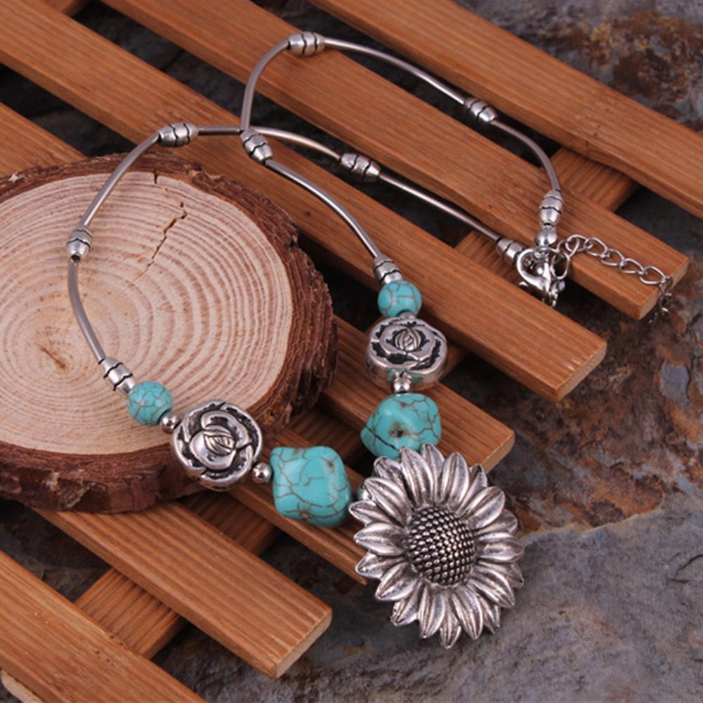 BLUELANS NECKLACE: Welcome~There are exquisite necklaces here, any style can satisfy you ~Sunflower, faux turquoise and flower design, lovely and stylish.Made of high quality material with delicate workmanship.Show the beauty of the neck, make you more charming and elegant.Type: NecklaceGender: Women'sTheme: BeautyStyle: FashionMaterial: Alloy, Faux TurquoiseOccasions: Party, Shopping, Banquet, Gift, Dating, Daily, etcFeatures: Sunflower Pendant, Faux Turquoise Decor, Fine WorkmanshipChain Length: 41cm + 4.5cm/16.14" + 1.77" (Approx.)Pendant Size: 3.5cm x 3.5cm/1.38" x 1.38" (Approx.)Notes:Due to the light and screen setting difference, the item's color may be slightly different from the pictures.Please allow slight dimension difference due to different manual measurement. Package Includes:1 x Necklace