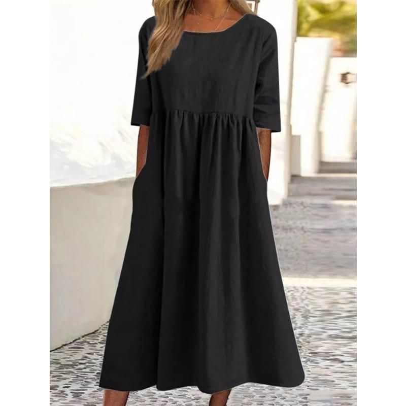 Pattern: solid colourSkirt type: oversized skirtWaist: loose waistSize:S,M,L,XL,XXL,XXXL,4XL,5XLSkirt length: long skirtNeckline: round neckMaterial: Cotton Placket: PulloverStyle Type:Comfort And; CasualSkirt Category:DressLabel:YesWashing Care:Hand washableSizeBust LengthWaistSleeveShoulderS97cm117cm93cm30cm42cmM102cm118cm98cm30cm43cmL107cm119cm103cm31cm44cmXL112cm120cm108cm31cm46cm2XL117cm123cm113cm32cm47cm3XL122cm124cm118cm32cm48cm4XL127cm126cm123cm33cm49cm5XL132cm127cm128cm33cm51cmNoteManual measurement may exist 1-3cm difference.Due to the light and screen setting difference, the item's color may be slightly different from the pictures.Package specification: 1*Dress