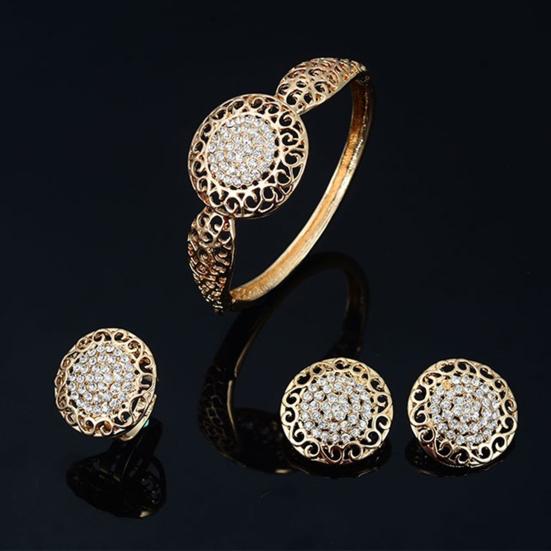 Description:The jewelry are fashion and rhinestone design, making you more attractive and elegant.With the characteristics of decorative and easy to match, the jewelry are suitable as gifts for mothers, girlfriends, wives and any other female friends.Made of high quality alloy and rhinestone material, the jewelry are durable and exquisite.The size of the jewelry is one size.This jewelry set is suitable for wedding, evening party, banquet, or other formal occasion.Item Name: Jewelry SetsMaterial:Rhinestone,AlloySex: WomenSize Details:Necklace Length: 45cm(Approx.)Bracelet Diameter: 6cm(Approx.)Earring Diameter: 3cm(Approx.)Ring Diameter: 3.6cm(Approx.)Notes:Due to the light and screen setting difference, the item's color may be slightly different from the pictures.Please allow slight dimension difference due to different manual measurement.Package Includes:1 Set of Jewelry