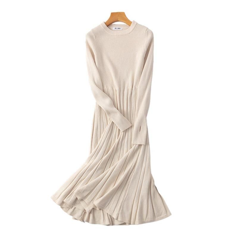 Material: Viscose 70%, Nylon 20%, Spandex 10%Silhouette: A-LINENeckline: O-NeckSleeve Length: Full SleeveSleeve Style: RegularGender: WOMENDecoration: NONEStyle: CasualWaistline: empirePattern Type: SolidDresses Length: Knee-LengthSeason: Autumn/WinterProduct Include: 1*DressLabel: YesWashing Care: Hand wash cold, Iron at normal temperature