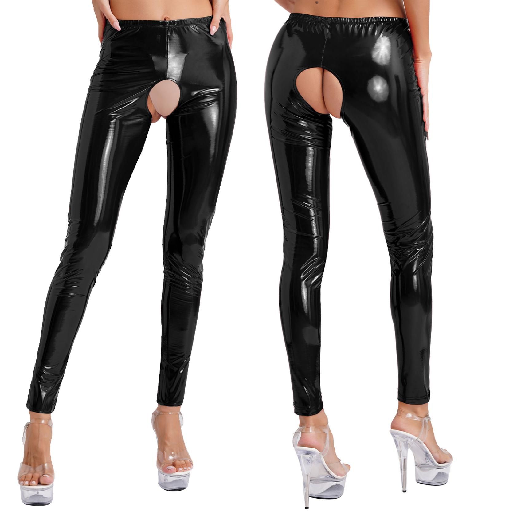 Size Length Waist HipsS 93cm 64cm 74cmM 94cm 68cm 78cmL 95cm 72cm 82cmXL 96cm 76cm 86cmXXL 97cm 80cm 90cm3XL 98cm 84cm 94cm4XL 99cm 88cm 98cmSet Include: 1Pc PantsCondition: New With TagMaterial: faux LeatherFeatures:Made of smell-free patent leather with glossy surface, skin-friendly and non-toxic, gives you a comfortable wearing experience.Patent leather leggings are designed with high waist, elastic waistband, crotchless, slim fit and solid color, which is a sexy shorts for womenOpen crotch design frees from taking off, so that you can start the spicy night with lover instantly, and go to the bathroom conveniently.Slim fit pants shape slender and straight legs and make you sexy, matching with crop top, corset, jackets, camisole, bra top and bodysuit.Suitable for club, night out, date, anniversary, pole dance, disco party, carnivals, single party, cycling shorts, cosplay and so on.Washing Care: Hand wash at 40C or below ,do not bleach,do not iron.Label: Yes