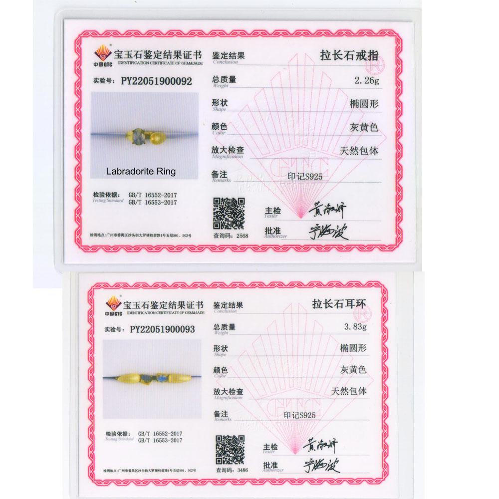 Product Information:Brand Name:Bolai JewelrySilver colour:yellowSilver weight:earring approx.3.56g/ring approx.2.19gItem:925 sterling silver Jewelry SetMain stone:natural labradorite oval 6*8mmGemstone weight:approx.4.5ctEarring Size:2.66*0.66cmGemstone treatment: noneside stone:NoneJewelry Box and Silver polish cloth is attached.