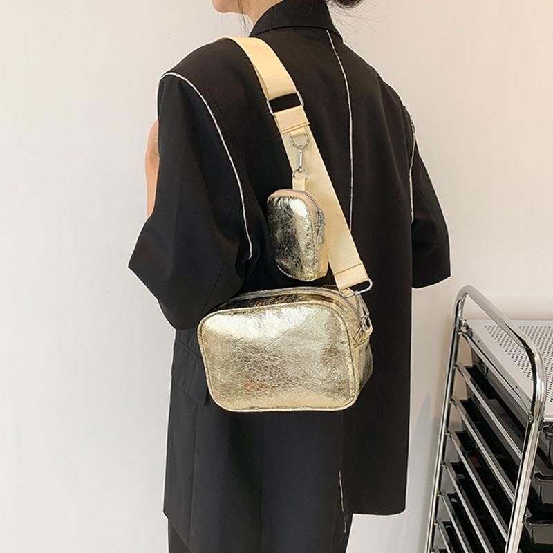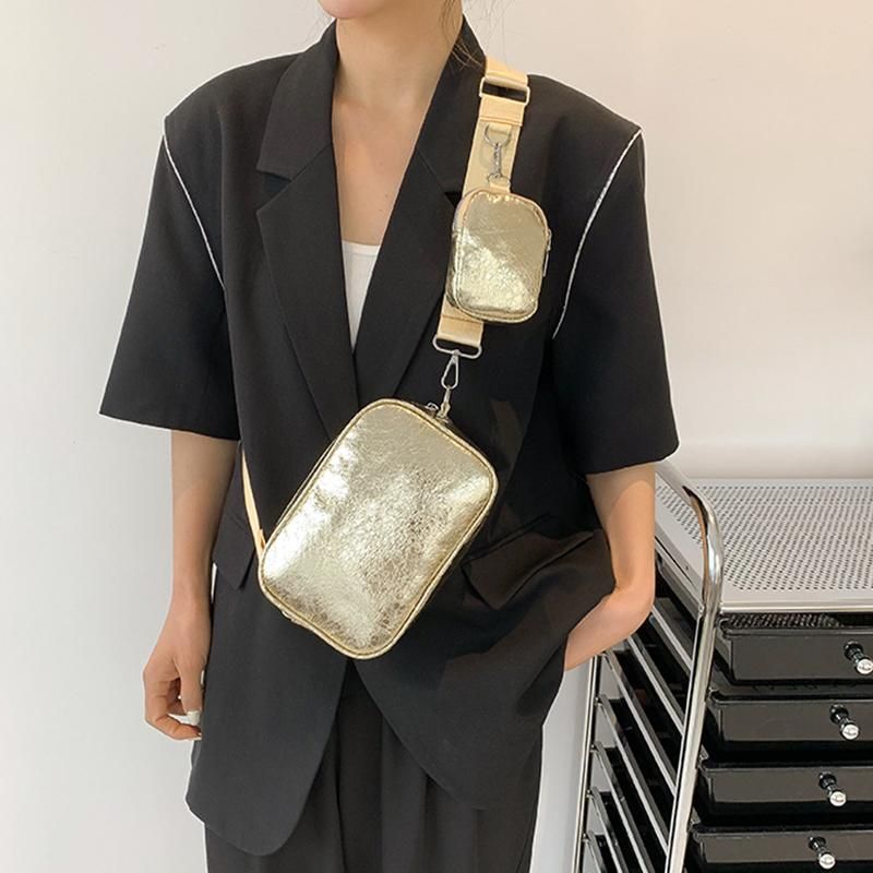Womens Pu Leather Small Gold Shoulder Crossbody Bag