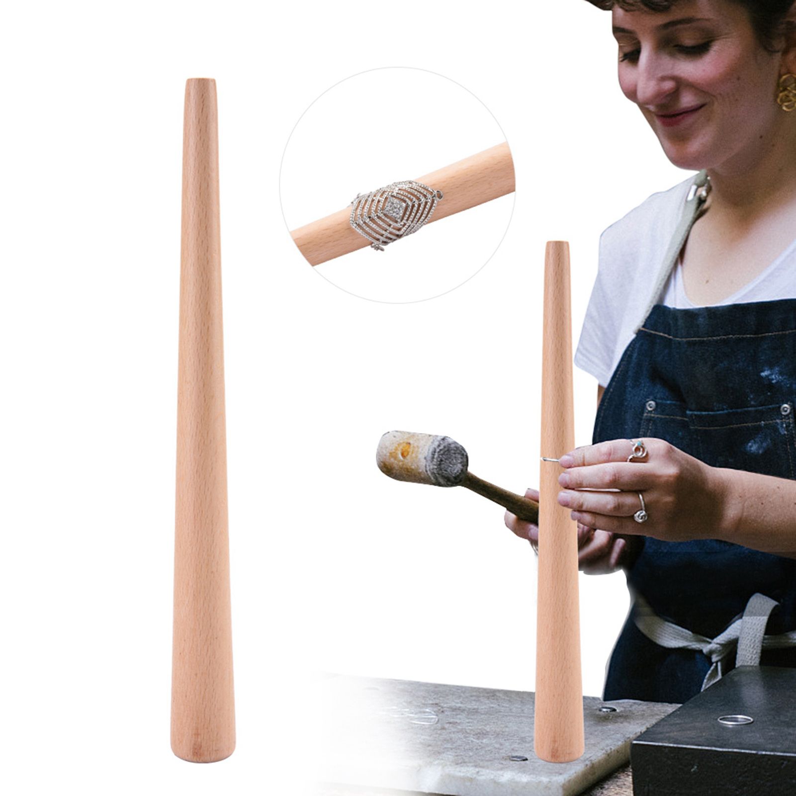 1Perfect for supporting ring during polishing, grinding, and jewelry making. 2Made of wood, it is heat resisting, and strong enough to put ring around it and working well. 3Easy to use, economical and practical jewelry tool. 4Wooden sticks ensure that it will not deliver the heat from the ring. 5If you have it , rings can be made well.
