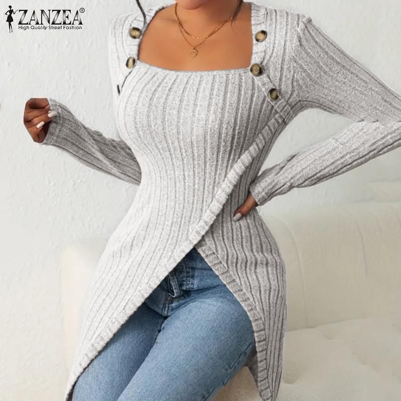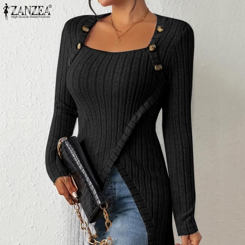 Package included:1xBlouseMaterial:95% Polyester,5% SpandexColors:Black,GreySleeve Length:Full SleeveNeckline:Square CollarPattern:Solid ColorBuckle chain:Button Down Front(Decorative)Thickness:ThinFeatures:Irregular HemSeason:Spring,AutumnLabel: YesWashing: Hand or machine wash, Dry clean, Iron at normal temperature